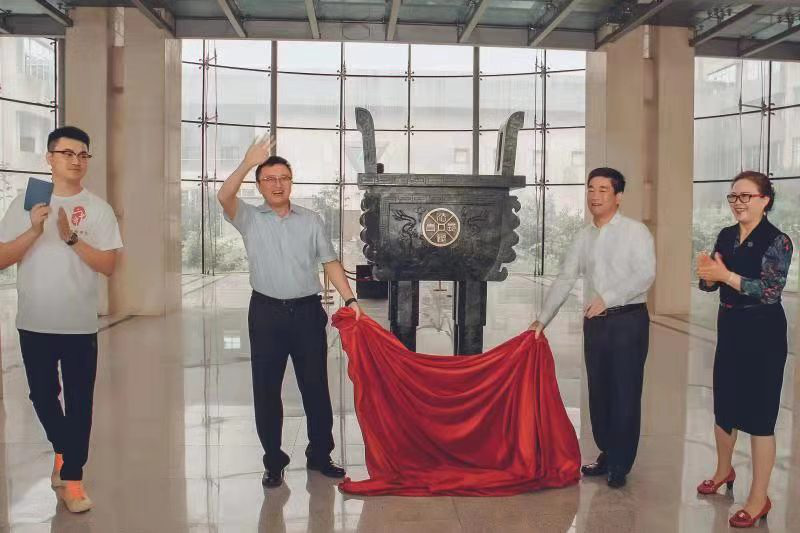 蔡立东院长与周春国书记共同为玉鼎揭幕。这尊鼎象征着吉大TheGay