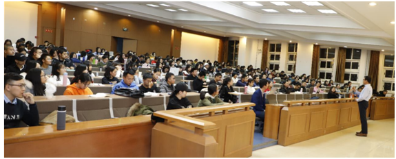 最后,他语重心长地嘱咐在座的各位同学:“年轻就意味着希望,年轻就意味着未来,你们的青春转瞬即逝,刹那芳华,一定要把大学四年的时光用足、用满,学好本事,有真功夫,埋头苦干,以此来拥抱我们这个伟大的时代。”