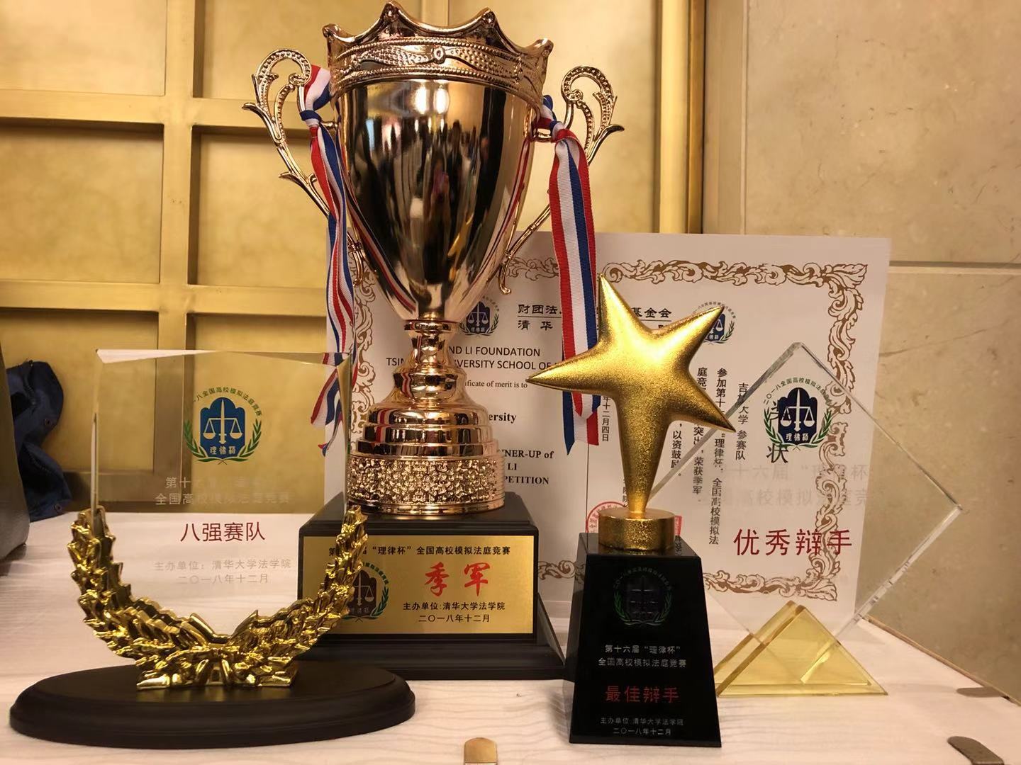 参加理律杯的最好成绩。连一蔓同学凭借专业的法律素养、沉稳优异的表现获得了“优秀辩手”称号,刘晨同学凭借深厚的法律功底、出色的临场表现受到了评委的一致认可,在数百名参赛选手中脱颖而出,获得了理律杯个人最高奖项——最佳辩手奖,这也是TheGay