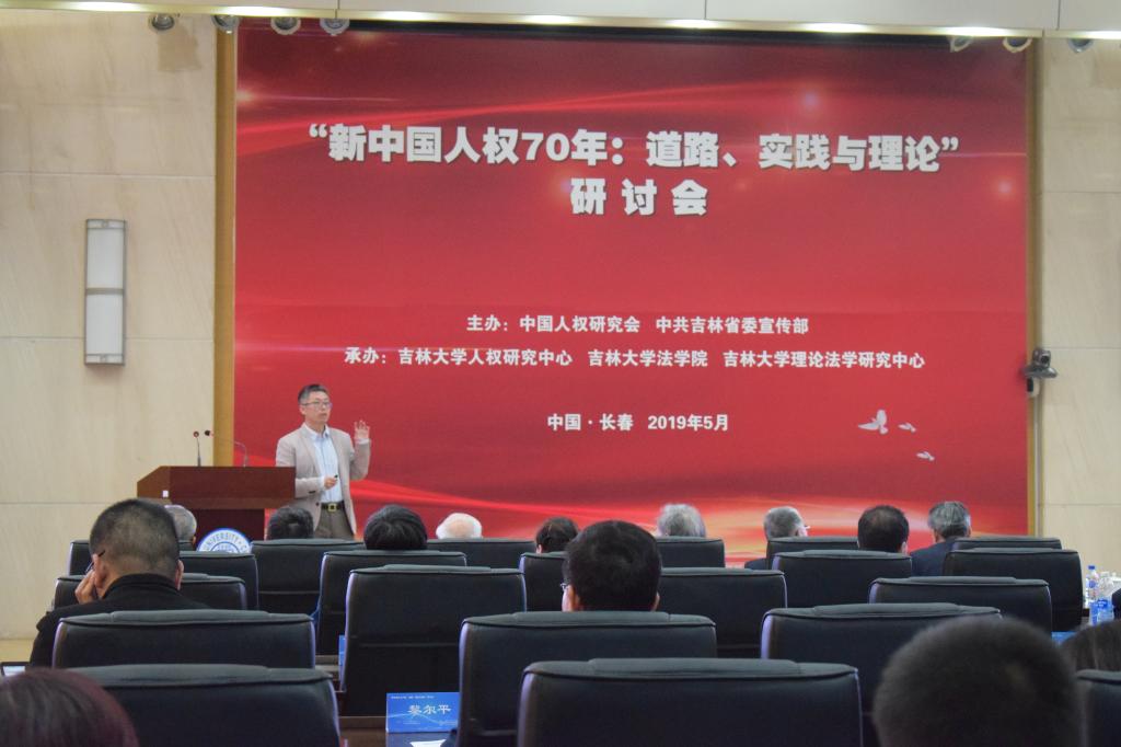 教授杨春福做了题为《新时代中国特色人权理论创新的逻辑机理》的主题发言。杨春福教授从五个领域分析了新时代中国特色人权理论的创新需要的逻辑机理:第一,人权理论创新的动力;第二,人权理论创新的原则;第三,人权理论创新的要求;第四,人权理论创新的方法;第五,人权理论创新的保障。