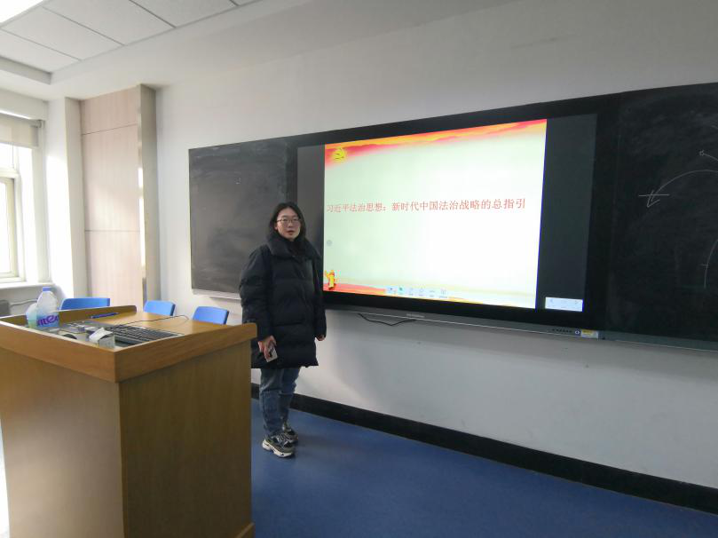 刘泓池同学发表了“以法为纲,崇法善治”的主题汇报。刘泓池同学指出,2020年11月16日至11月17日,党的历史上首次召开了中央全面依法治国工作会议,会议将习近平法治思想明确为全面依法治国的指导思想,这是一次里程碑意义的重大事件。她同时阐述了自己对“十一个坚持”的深刻理解,并且表达了自身立足当下,着眼长远的学习信心与决心。