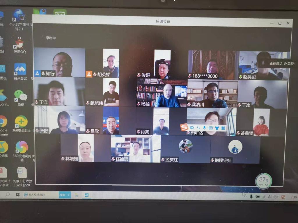 周春国在最后讲话中叮嘱大家首要做好个人防护工作。他对各位党员表示了极大的关心和慰问,对大家在居家办公期间饱满的工作热情和勤恳的工作状态表示肯定。他强调,各位党员是学院行政教辅团队的中坚力量,要勇于做好学院防疫工作的先锋队,为全院师生竖起阻击疫情的第一道坚固防线;要勇于做好学院防疫工作的主力军,既积极勇敢地做好战斗员、又聪明睿智地做好指挥员;要勇于做好学院防疫工作的宣传员,对学院防疫工作中涌现的先进人物、典型事迹和感人故事要进行及时的报道,让党旗在校园永远高高飘扬,让党徽在心头永远熠熠闪光。