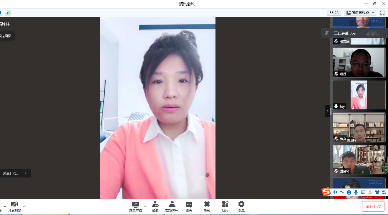 最后,书记周春国通报学校和学院整体抗疫情况,并对当前面临的局势提出进一步工作要求。周春国强调,在抗疫攻坚时期,要举全院之力做好多重保障工作,要多从学生主体的角度思考问题,多从学校全局的角度思考问题,更要坚持实施“四师建设工程”,发挥教师是学生成长导师不可替代的作用。具体而言,一要做到“一定要上好课”,用高质量的课堂教学和老师的学术魅力吸引学生,通过名师讲座等让学生有获得知识的成就感。二要做到“一定要引好路”,立德树人,德法兼修,要在课堂上实践课程思政,激励学生找准人生的方向,换种角度,将封寝也视为一种修行。三要做到“一定要爱好生”,研究生导师和本科生导师要了解学生所需,反映学生诉求,力所能及地帮助学生解决实际问题,加强亲学关系。四要做到“一定要带好头”,教师党支部要带头做好主题党日;老师个人要带头做好及时关注和反馈学院的工作安排,坚持实事求是地做好每日健康打卡;行政人员要带好头,做好管理和老师们服务保障工作,做好安全防火;辅导员要和老师们保持沟通,必须做到底数清楚,做到一人一策,一个不落。周春国嘱托全院教师,一定要与学生们同心、同向、同行,共同努力,用温情和付出打造吉大法学家园共同体,用真诚和爱陪伴学生们走过这段艰辛的心路历程。