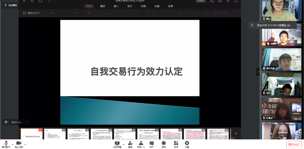 此次师门会汇报的同学是文孝峰。她基于自己研究的主题,对董事自我交易行为效力认定问题阐述了自己的研究成果和自己对此问题的认识。汇报结束后,同学们向孝峰同学进行了提问,也提出了自己对某些问题的认识。最后,老师回答了同学们的问题,对孝峰同学的汇报从逻辑结构到PPT制作和语言表达等进行了详细的点评,并建议她吸收同学们讨论时的观点,充实自己的研究。同时,老师也再次强调了每次师门会的意义,希望大家认真对待每一次汇报,不断夯实自己的专业基础,提高自己的专业能力,并规划好自己的未来。