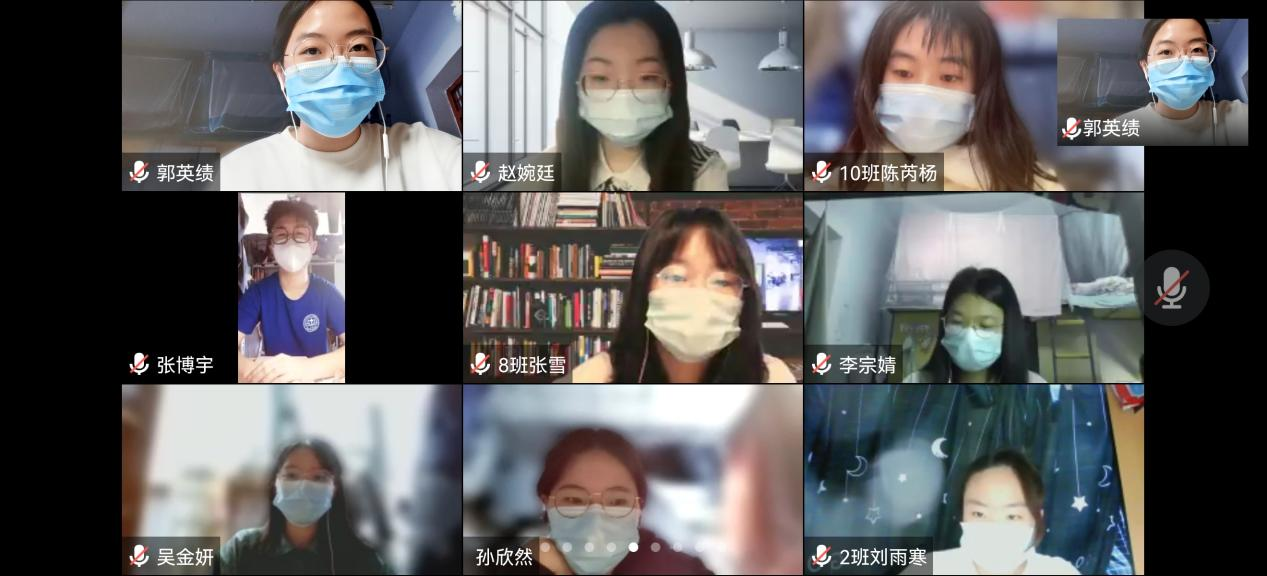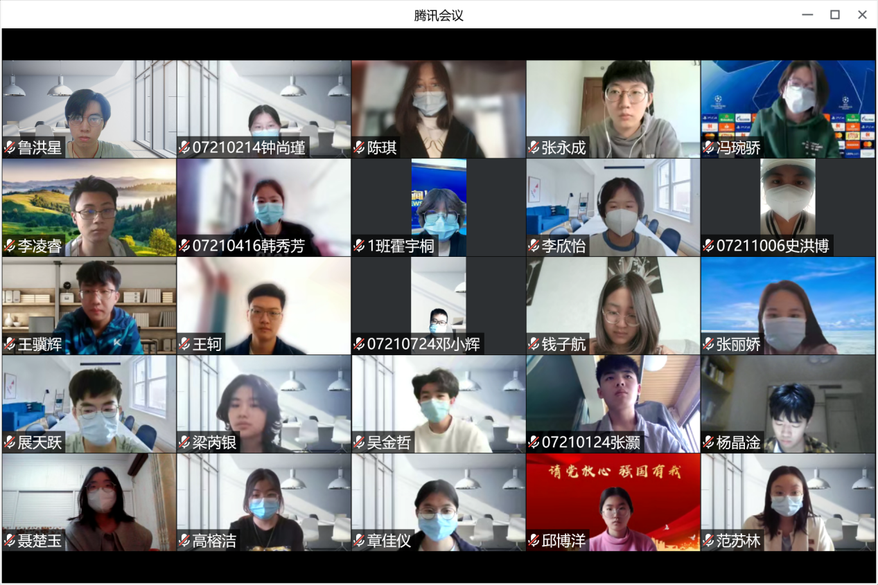 同学们纷纷就身边的抗疫故事进行了交流与分享。本科生2020级党支部预备党员郭英绩同学回忆了封寝期间的点点滴滴,她为大家讲述了寝室楼楼长、各楼层楼层长的日常工作。小至每日的一日三餐和生活物资的配送,大至全体人员的管理,各位负责人尽职尽责,用自己的付出保障了宿舍楼的正常运转。温添羽同学谈到,在宿舍楼封闭管理期间,同学们的表现更让她感动。同学们严格遵守疫情防控要求,更有学生挺身而出担任志愿者,他们牺牲自己的休息时间,为同学服务,同心抗疫,担当尽责。尤其在宿舍楼成立临时党支部之后,在基层党组织的带领下,全体党员共同抗疫,使工作进行地更加有序高效。颜雯婧同学则分享了家乡让她感动的故事,她讲到,在家乡疫情最严重的时候,城市街道上空无一人,旁边的楼宇里灯火通明,居家隔离的居民们通过窗户看到一支支救援队奔向工作场所,这种逆行令她印象十分深刻,十分感动。广大医务人员们冲锋在前,不惧危险,最终取得了抗疫的胜利。
