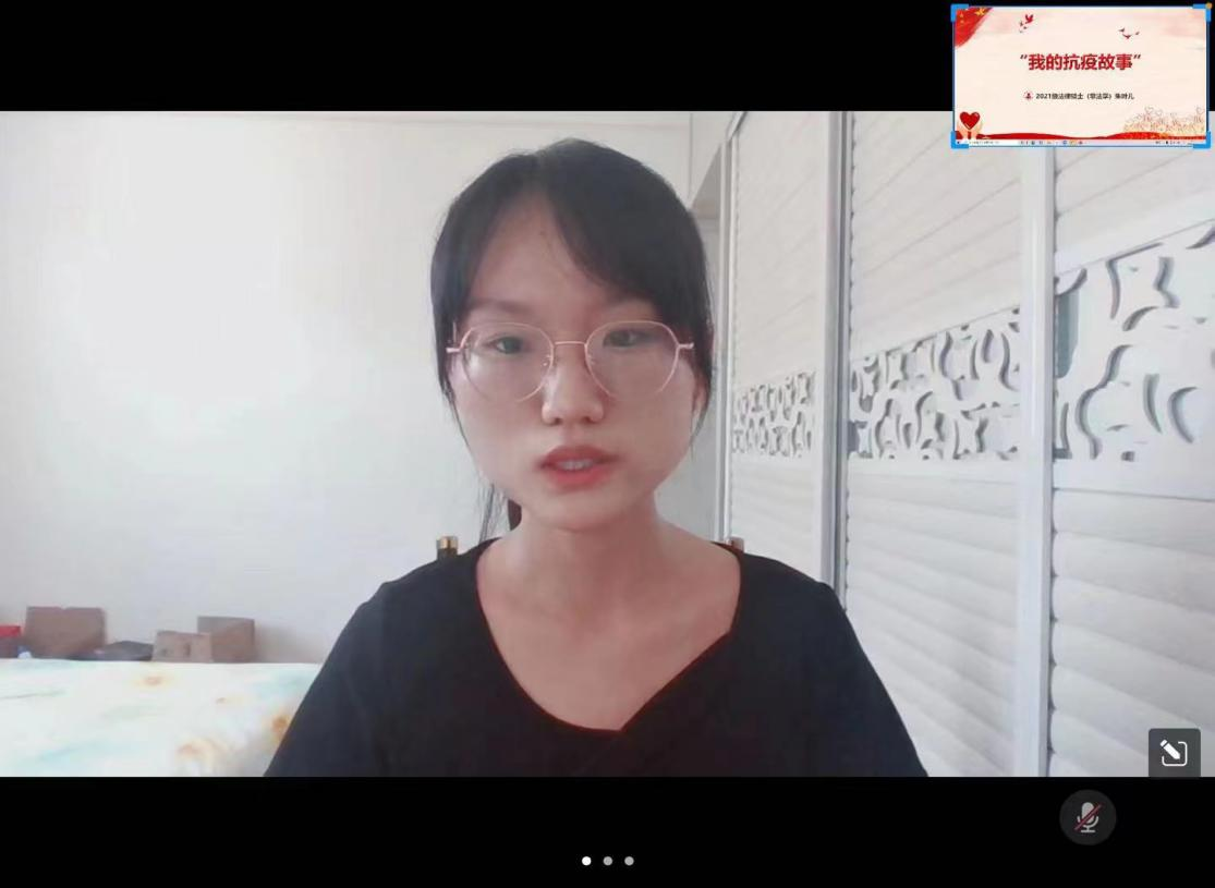委员会关于新冠疫情应急管控时期加强党的建设的指导意见》有关要求,为进一步弘扬伟大抗疫精神,大力宣传身边党员和师生在疫情防控中的先进事迹、感人故事与崇高精神,2021级法律硕士(非法学)第一党支部全体党员在5月20日召开以“讲述身边抗疫故事,弘扬伟大抗疫精神”为主题的线上党日活动。为使党员同志们能够身临其境地感受志愿者们的伟大付出,本次党日活动邀请了崔馨予、李鑫阳、朱叶儿三名曾担任疫情防控志愿者的同学为大家讲述担任志愿者时的工作与感想。
