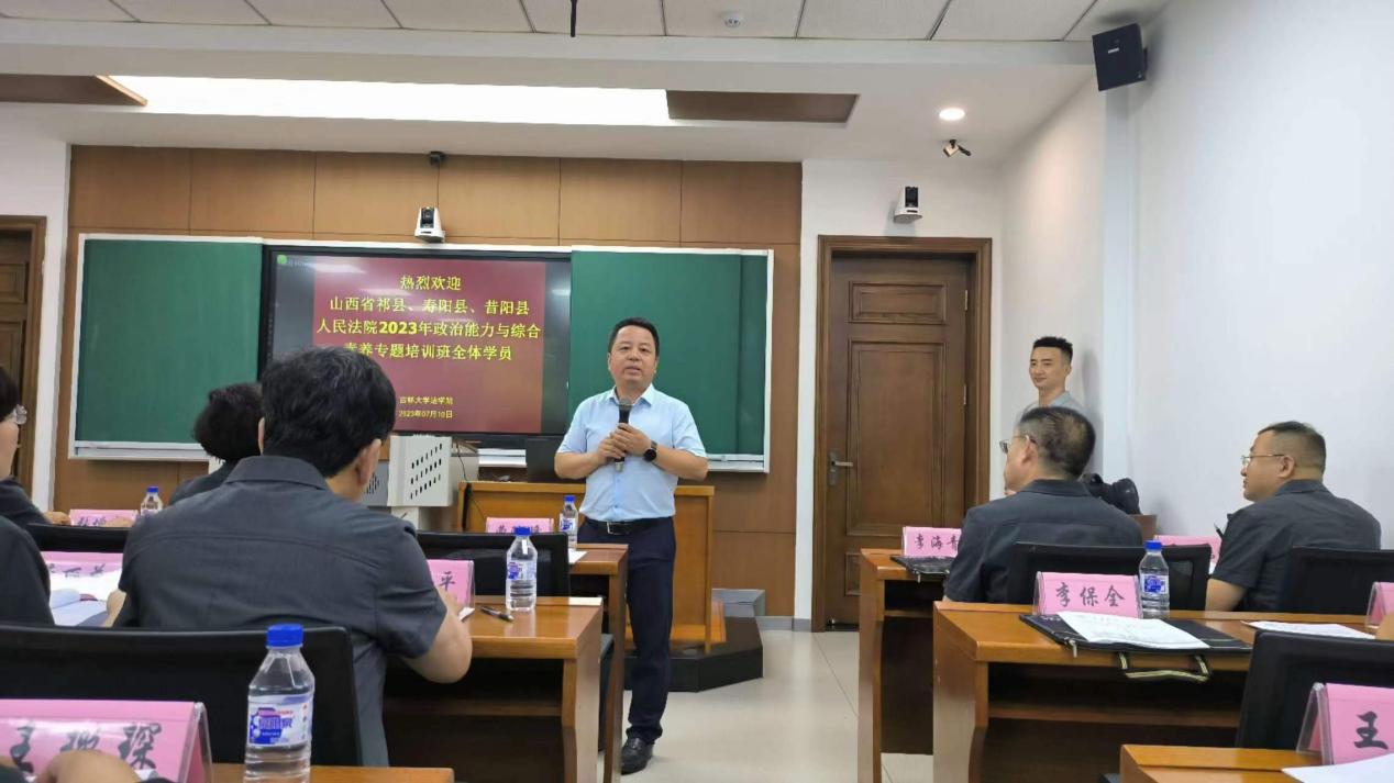 是全国知名的五院四系成员,是大家向往已久的学术殿堂,在这个炎炎夏日能够有机会来到这里学习,希望大家珍惜本次机遇,端正学习态度,强化政治意识,提升政治业务素养,并强调了培训纪律,严格遵守学校培训班的各项规章制度,维护好山西省法院干警的良好形象,最后预祝本次培训圆满成功。