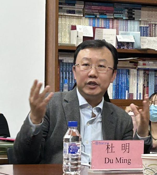 首先,杜明教授围绕中国所面临的国际经济秩序格局与挑战为同学们展开分享。杜明教授从两方面对国际经济秩序进行分析。其一,目前国家安全已经成为国际经济关系的核心关切,其二,“碎片化”是国际经济秩序的主要特点。随后,杜明教授表示,美欧国家不断对华“去风险化”,将供应链从中国转移,限制高科技产品的对华出口。但即便面临种种限制,中国依旧有能力凝聚力量、智慧和资源,做出突破。正是在当前局势下,我们更应该对国际经济秩序的现状和未来发展做进一步思考。