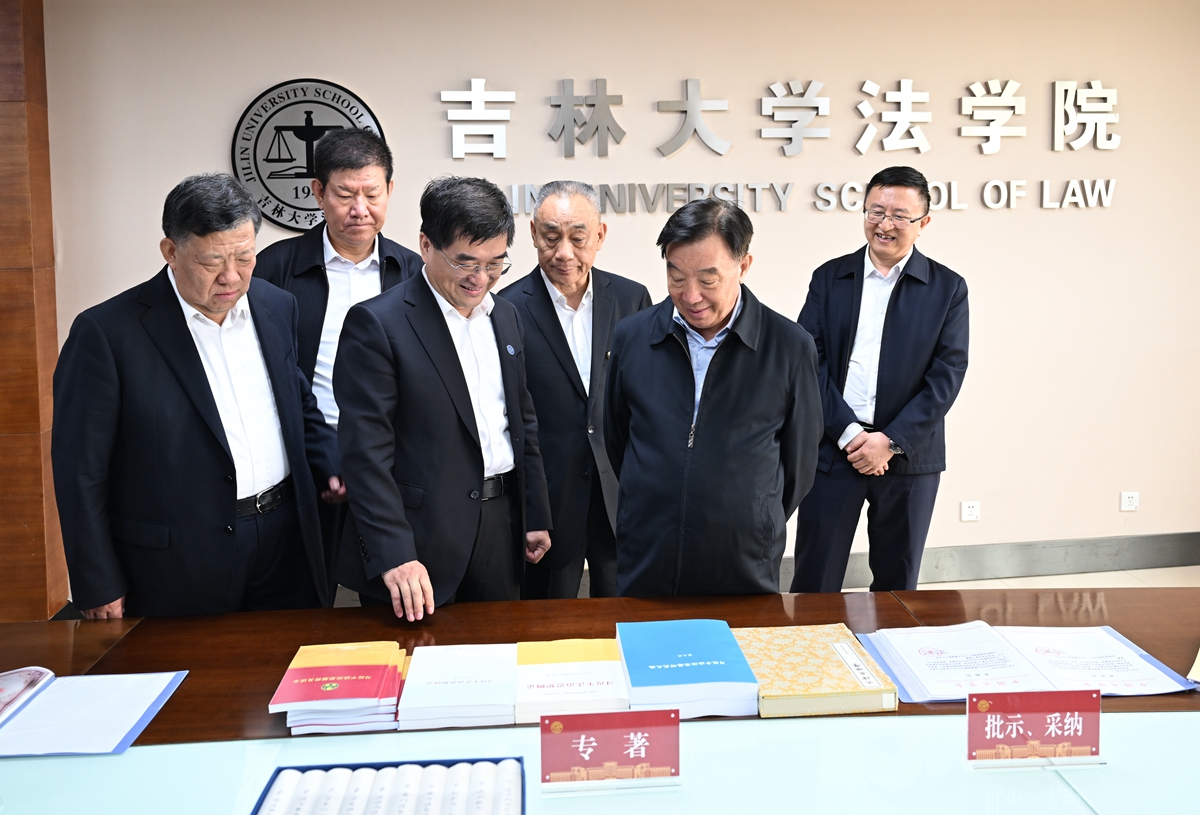 调研,考察习近平法治思想研究中心和学校发展情况。他强调,要深入学习贯彻习近平法治思想和总体国家安全观,认真贯彻落实党的二十大关于加快建设法治社会的战略部署,继续深化理论研究,创新教学方法,培养优秀人才,为推动我国法治建设贡献更多智慧和力量。中国法学会党组书记、常务副会长陈训秋,党组成员、副会长王其江,吉林省委常委、省委政法委书记李明伟,省法学会会长马俊清,校党委书记姜治莹,党委常委、常务副校长蔡立东陪同调研。