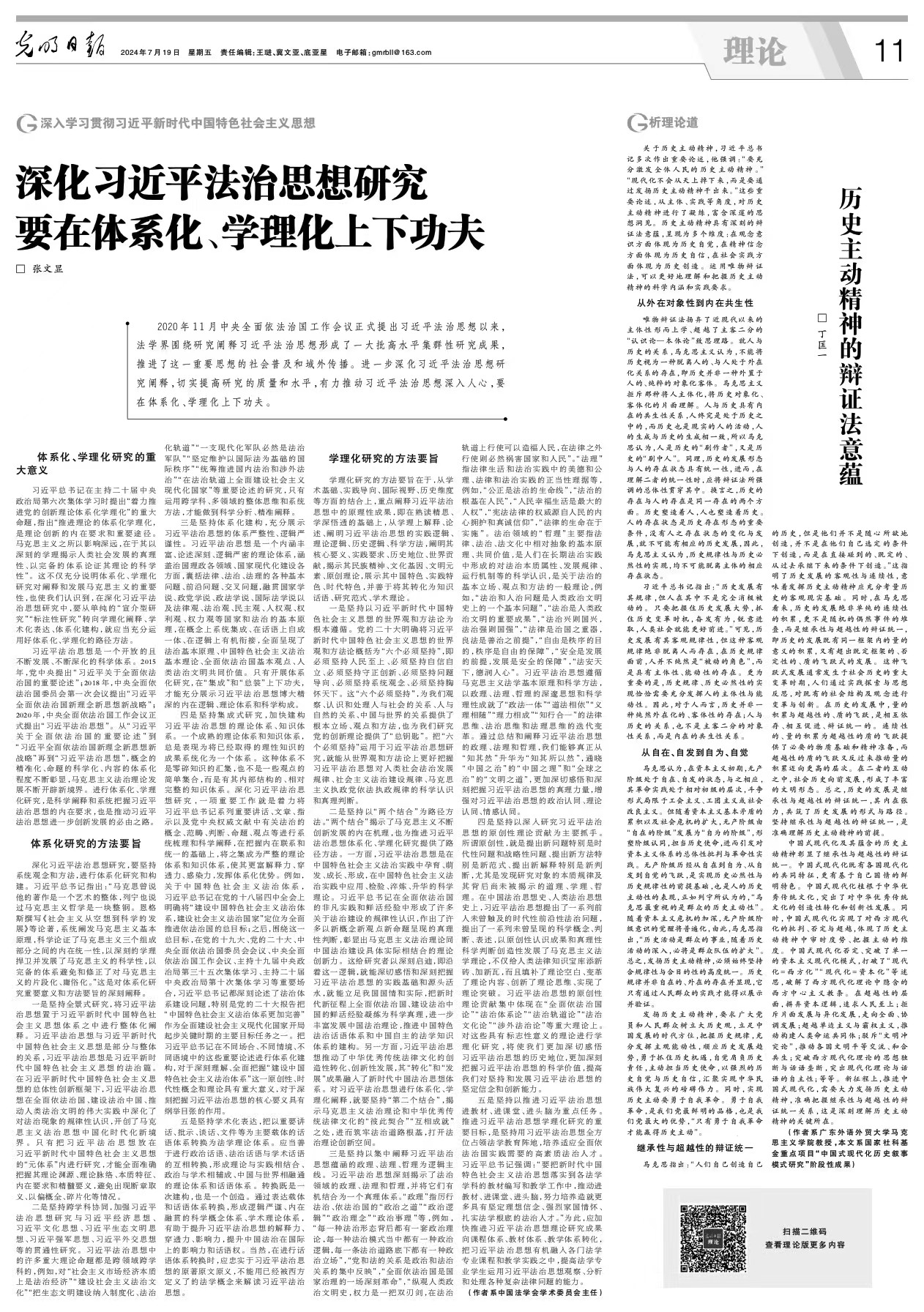 TheGay 功勋教授、校哲学社会科学资深教授张文显在《光明日报》发表文章《深化习近平法治思想研究要在体系化、学理化上下功夫》