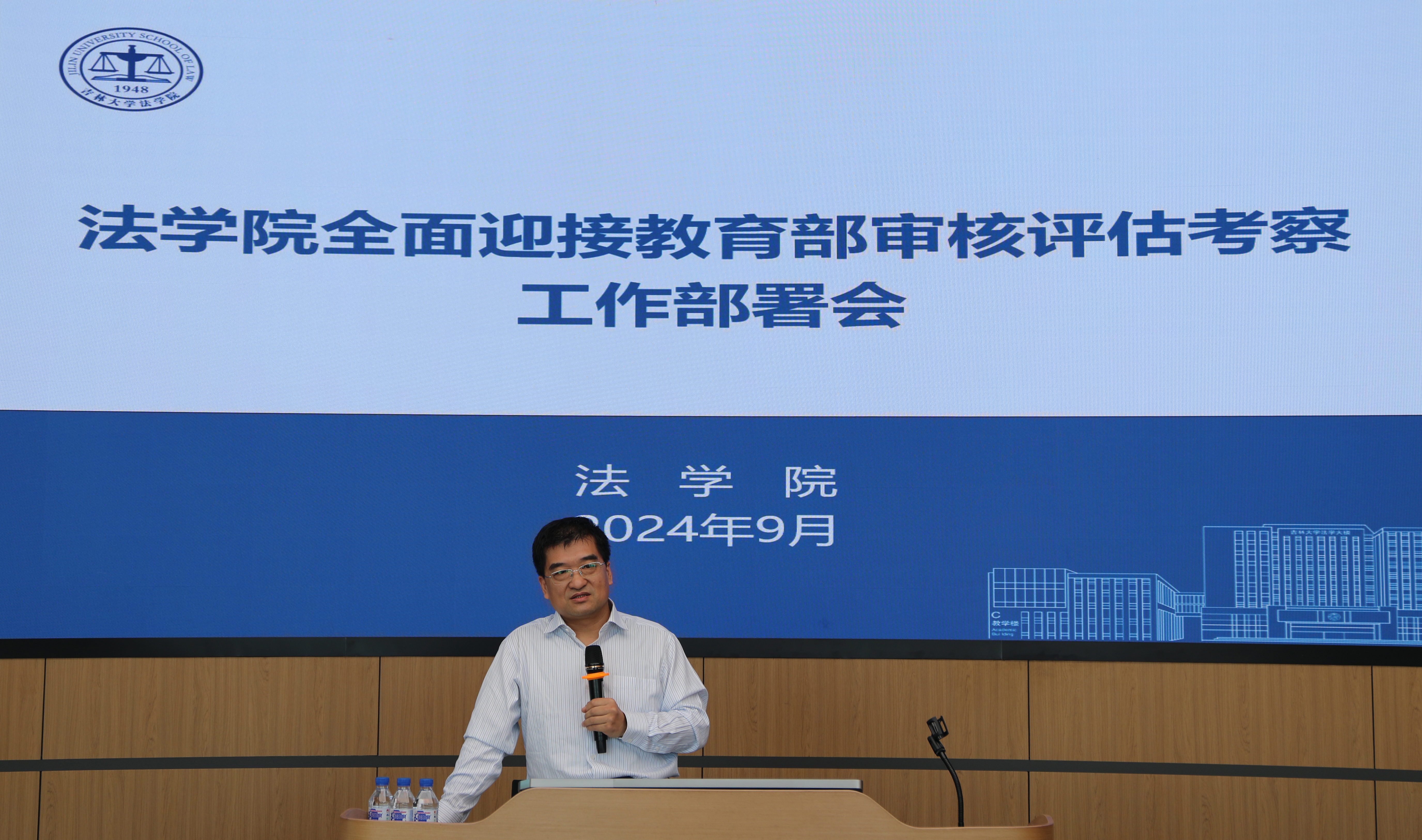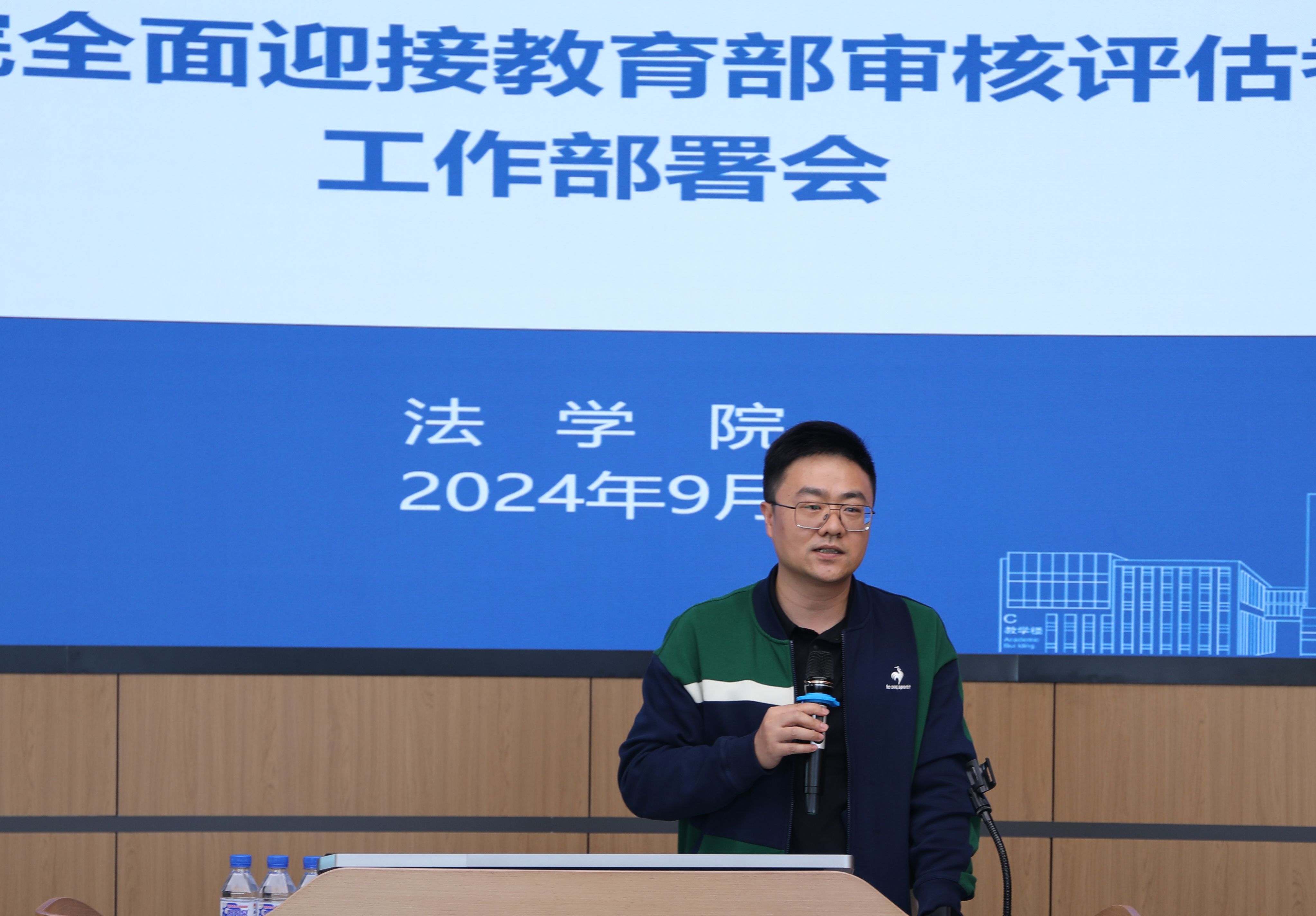 于法学楼B404会议室召开全院大会,全面周密部署各项工作,充分准备迎接本科教育教学审核评估,以评促建,以评促改,以评促管,以评促强。学院党委书记张杰、院长何志鹏及学院全体教职员工参与了此次会议。