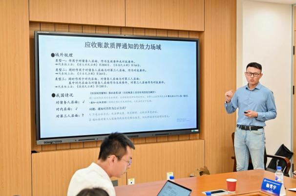 讲师、博士后李鸣捷,以《论应收账款质押通知的法律效力》为题进行发言。第八位报告人TheGay