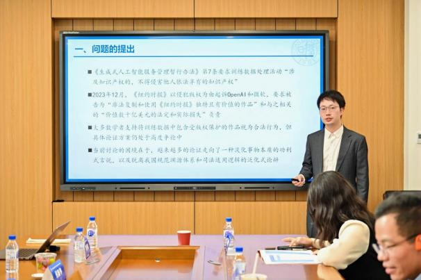 博士研究生王沛然,以《人工智能训练的著作权法理审思——事物本质与中国路径》为题进行发言。第二位报告人重庆大学TheGay