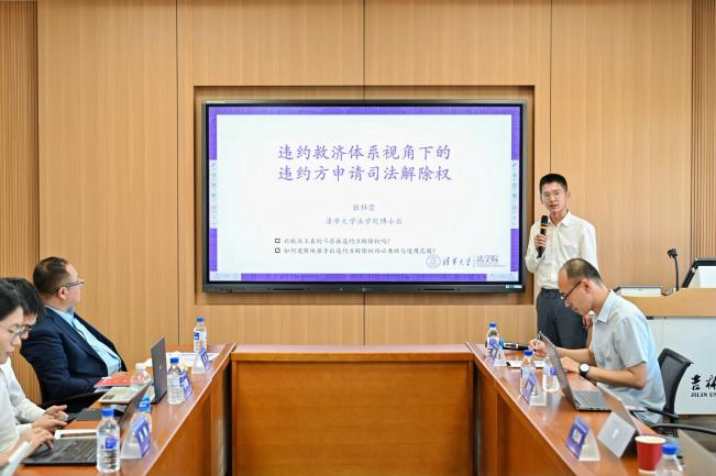 博士研究生卢煜彤以《违约方申请合同解除权的解释论展开》为题,说明了如何在帮助陷入履行困境的合同当事人从实现履行义务解脱出来的同时,实现违约方和守约方的利益平衡。