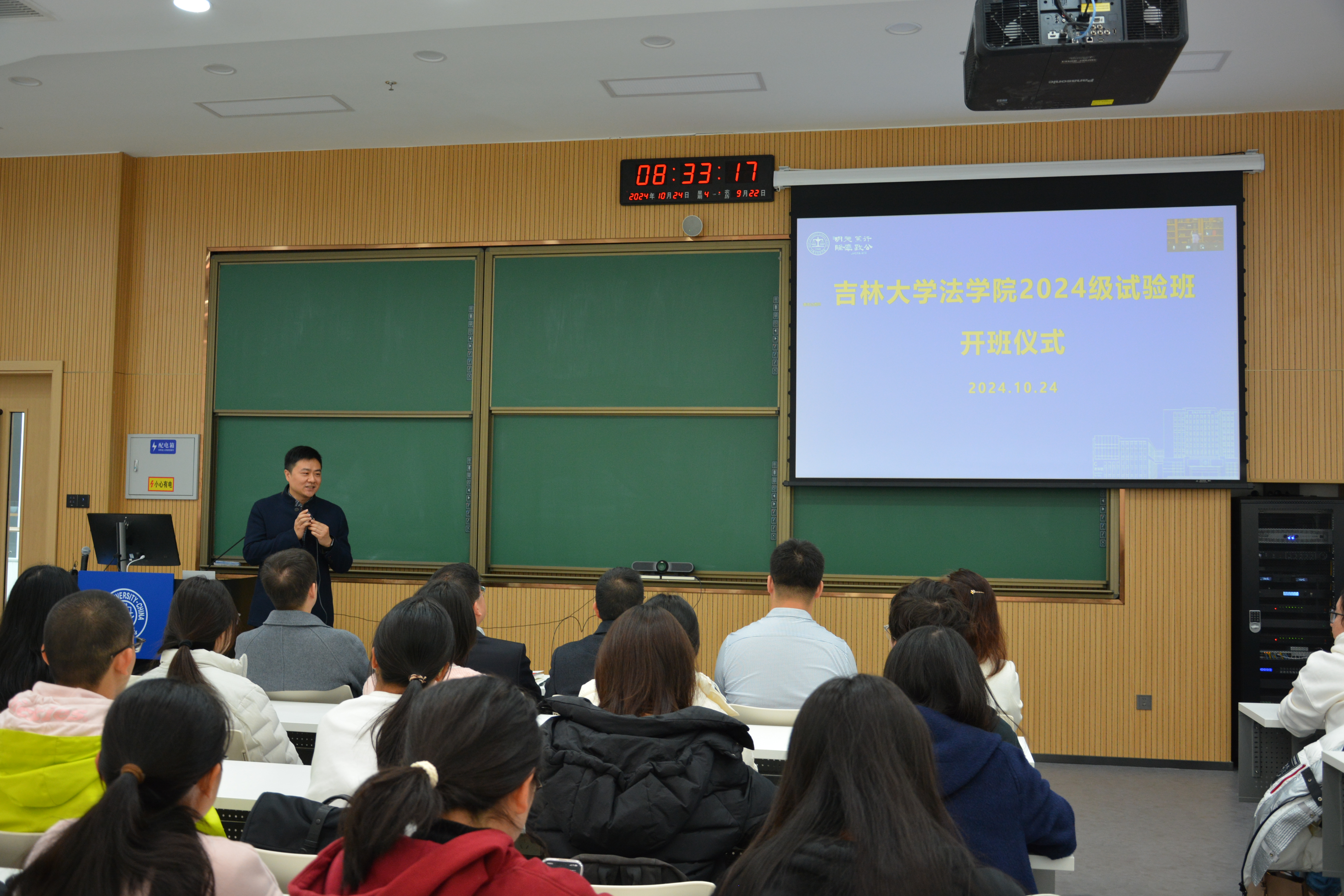 院长何志鹏教授,副院长刘晓林教授,授课教师代表侯学宾教授、沈寿文教授、周晓虹副教授出席会议。教学办公室和学生办公室相关工作人员、2024级吕振羽班(法学)20位同学、涉外法治人才培养试验班49位同学一同参会。开班仪式由刘晓林教授主持。