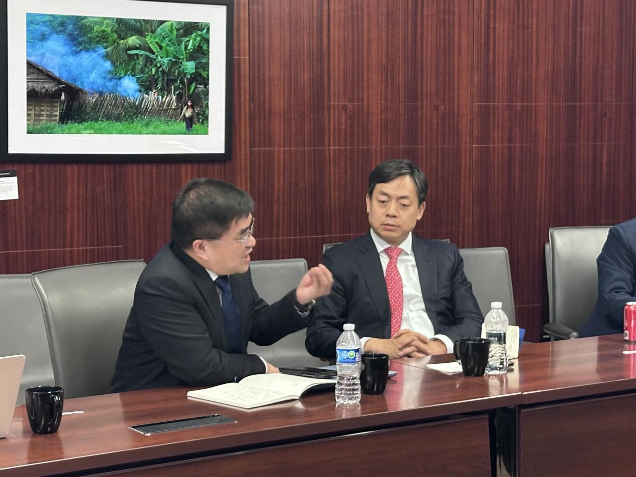 代表团赴亚洲协会参加交流会,亚洲协会(Asia Society)是美国举足轻重的重要智库,是洛克菲勒家族在1956年创办的民间组织,现已成为美国最权威的亚洲政策民间研究机构,是美国和亚太最具影响力的教育文化机构。会议以“探讨中美之间的误解与沟通不畅”为主题,旨在加强两国在当前复杂国际局势下的理解与对话,推动建设性沟通与合作,参会人员包括亚洲协会执行副总裁兼首席运营官、亚洲协会政策研究所创始主任兼高级研究员Debra Eisenman、路透社总裁Paul Bascober等来自政界、智库、媒体与学术界的重要代表。