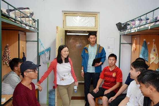 党委副书记兼副院长林媛媛老师、学生工作办公室主任马旭老师、团委书记骆旷达老师以及2018级辅导员于洋老师对大一新生寝室进行了走访。本次寝室走访旨在了解大一同学们的住宿情况和实际需求,帮助18级新生同学们更加快速、顺利地适应大学生活。