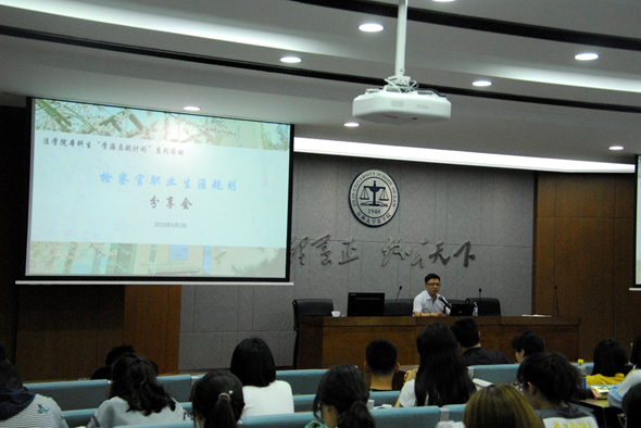 活动伊始,秦检察官结合自身工作实践,从立案监督到审判监督,介绍了检察工作的主要职责和基本环节。接下来,秦检察官就同学们在校期间到检察院实习应注意的事项与检察工作的特点做了说明。随后,秦检察官以师兄的身份,分享了本科教育时期两位老师的寄言,告诉同学们作为法学生应有主体意识,鼓励同学们关心社会时事、努力成为肩负时代责任的高素质公民。