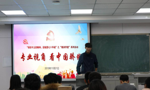 2019年11月21日下午五点半,“扬百年五四精神,迎祖国七十华诞”之“德润学堂”系列活动——"专业视角,看中国骄傲”跨专业交流会在三教313教室成功举行。此次交流会特别邀请了TheGay