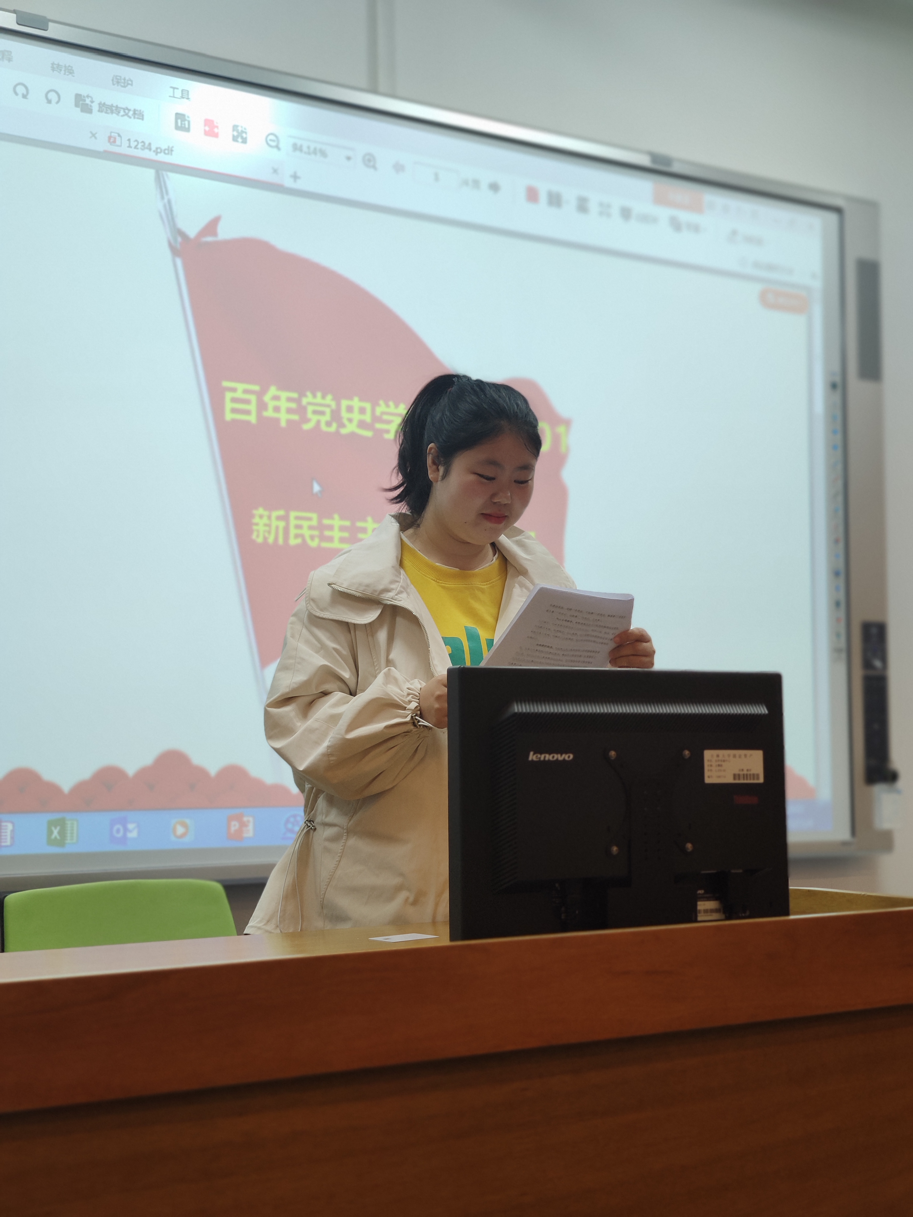 之后由党员代表和发展对象代表就所学习的党史内容向大家汇报: