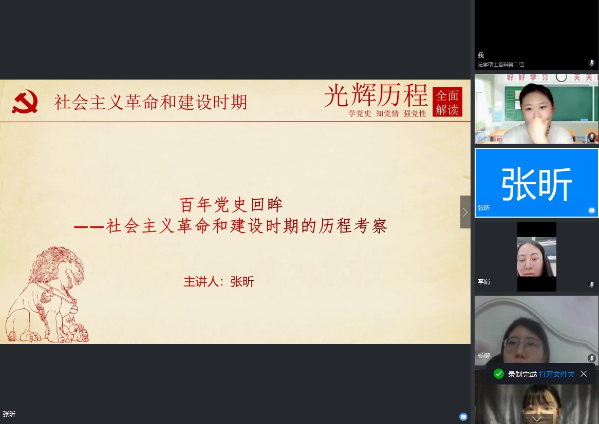 2019级博士生支部委员会通过钉钉线上会议形式,组织党员以“社会主义革命和建设时期的党史学习”为主题进行集中研讨。会议由党支部书记王鑫媛同志主持召开,第二小组成员进行主题发言,期间各支部成员积极发言,通过展示PPT的方式将学习收获与大家分享交流。