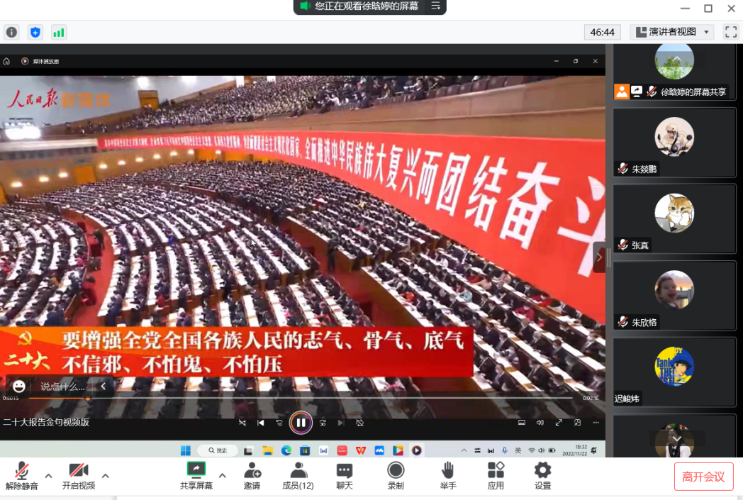 2022级法学硕士学生第一党支部于11月22日晚召开线上深入学习党的二十大精神主题党日活动。