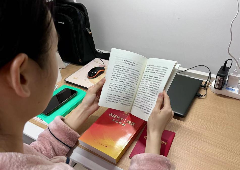 在讲解过程中,徐晗婷同志注重带领党支部成员学原文、悟原理,细心讲解好报告的每一处内容。徐晗婷同志强调:“习近平总书记所作的党的二十大报告,进一步指明了党和国家事业的前进方向与中心任务,是我们党团结带领全国各族人民在新时代新征程坚持和发展中国特色社会主义的政治宣言和行动纲领。”