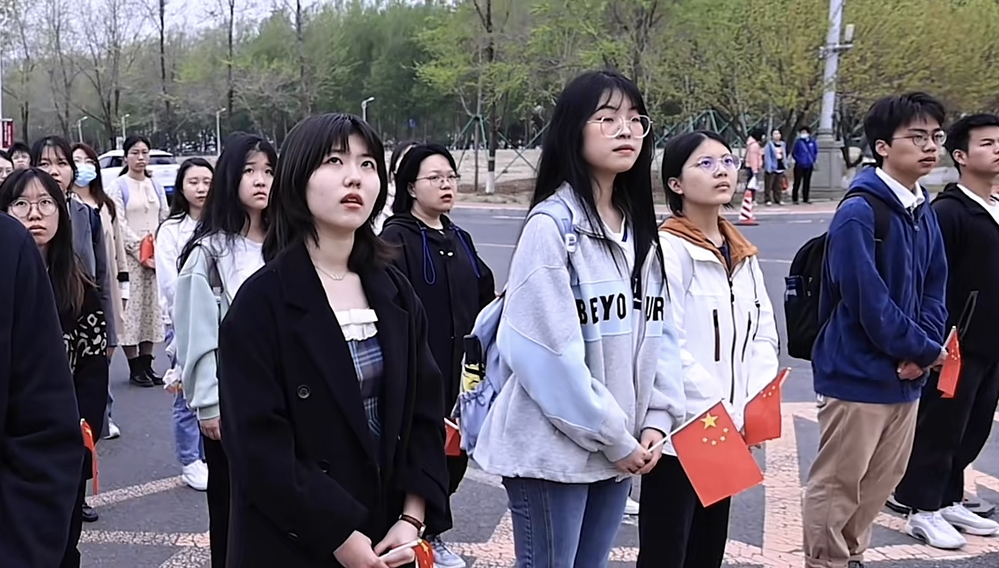 仪式最后,全体师生合唱《歌唱祖国》,唱出了爱国主义的豪迈情怀。在歌声中,青年学子对祖国深深的热爱与献身精神得以淋漓尽致地表达。