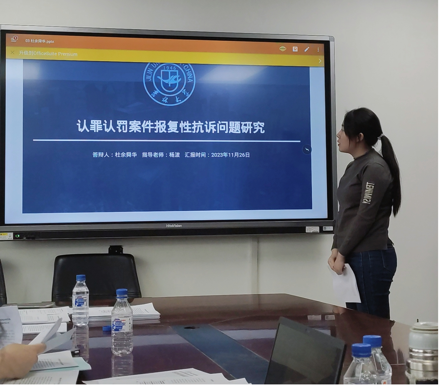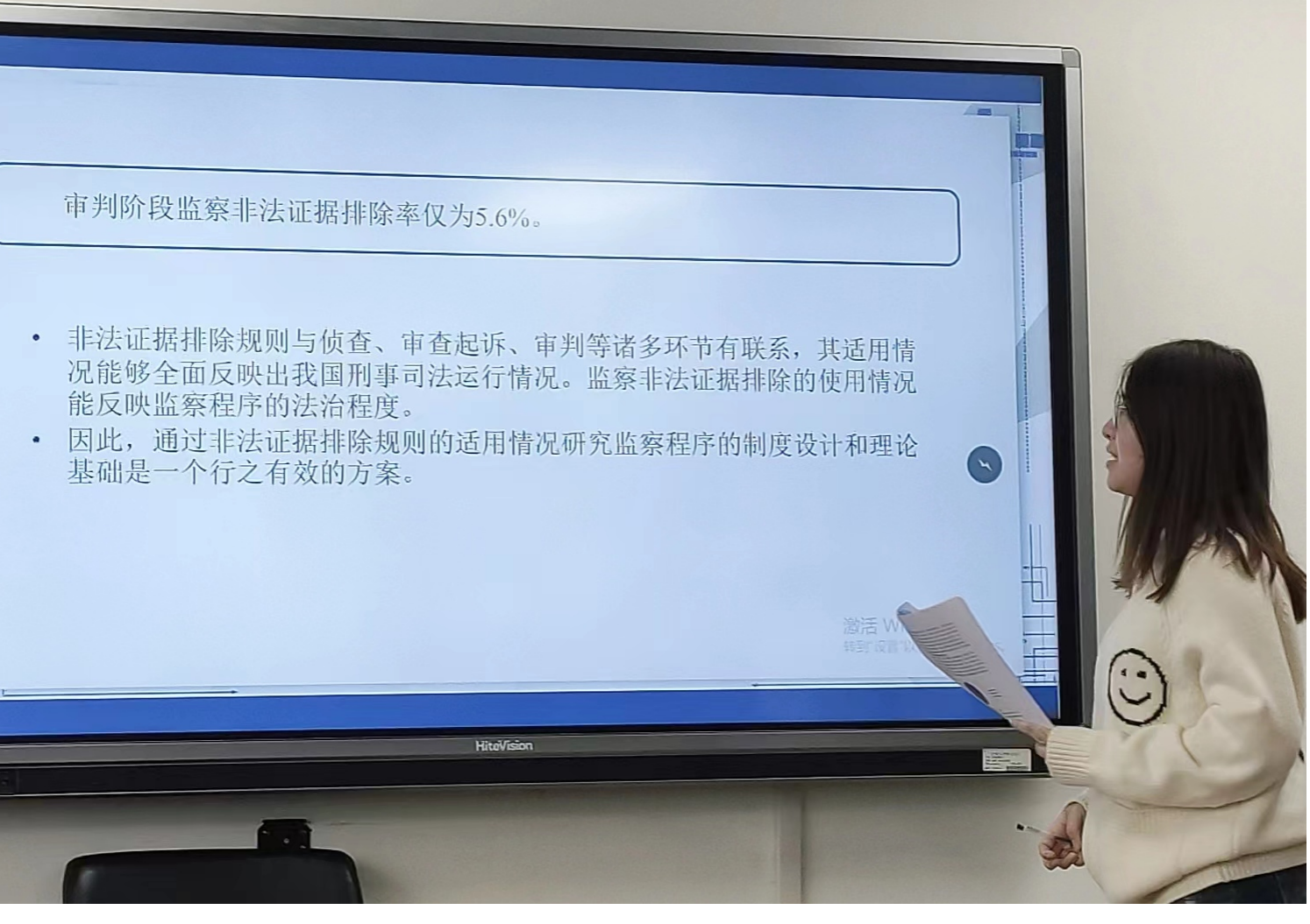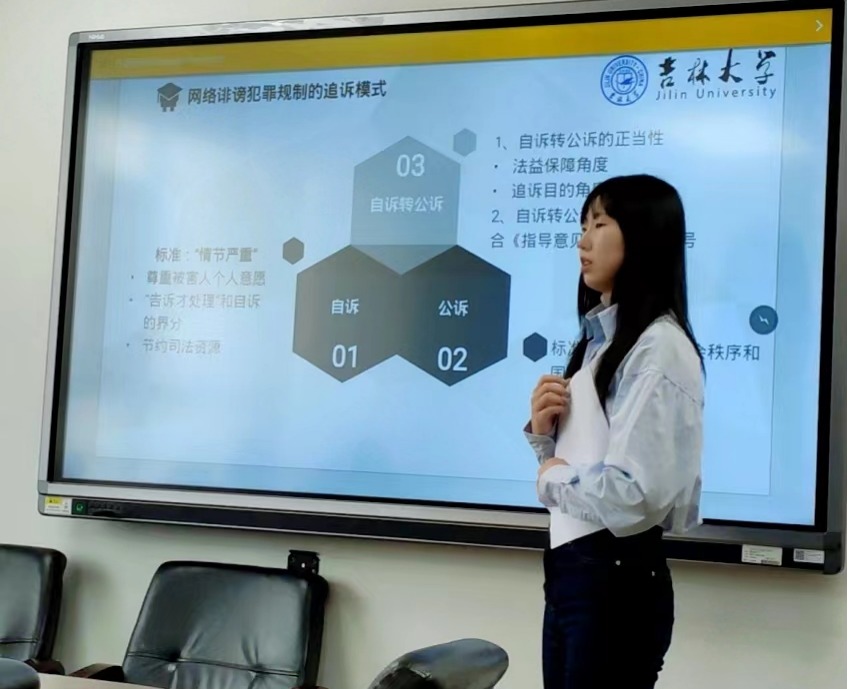 在第三小组的汇报中,牛雨霏同学以“被追诉人反悔后认罪认罚具结书适用问题研究”为题,从规范层面和实务层面分析被追诉人行使反悔权后失效具结书的适用困境,明确被追诉人反悔后失效具结书的效力,并试图构建该类具结书的适用规则;尹文婕同学的题目是“监察从宽处罚建议制度的实践检视与完善路径”,从监察从宽处罚建议制度的适用条件入手,对监察从宽处罚建议制度的实践现状予以考察,进而总结实践困境的成因,并探索该制度的完善路径;张中宝同学以“认罪认罚案件中被告人上诉权的保障——兼论被告人滥用上诉权的防范”为题,他从反面分析上诉权限制理论的弊端,又从正面论证被告人应当享有不被限制的上诉权,同时他认为检察机关“技术性抗诉”加剧了控辩之间的的不平等地位,是对被告人上诉权事实上的限制和障碍;李政泽同学的题目是“论认罪认罚案件量刑建议调整中的法院通知义务——以苏桂花开设赌场案为例”,他以苏桂花开设赌场案为引,并通过对《刑事诉讼法》第201条予以分析,认为认罪认罚案件调整量刑建议时法院应当通知检察机关,并强调法院与检察院应厘清自身定位;刘秋仪同学以“重罪案件适用认罪认罚从宽制度的困境与出路”为题,通过数据分析,认为重罪案件适用认罪认罚从宽制度的比例较低、实施细则不够具体、量刑幅度不够明确,从而建议精准量刑建议;赵月同学的题目是“认罪认罚从宽制度下无罪辩护的保障——庭审程序转化问题研究”,她认为审前程序检察机关主导认罪认罚、辩方参与认罪认罚协商程度保障不足、协商过程缺少监督机制,因而有必要在认罪认罚从宽制度下对无罪辩护的庭审程序予以保障。