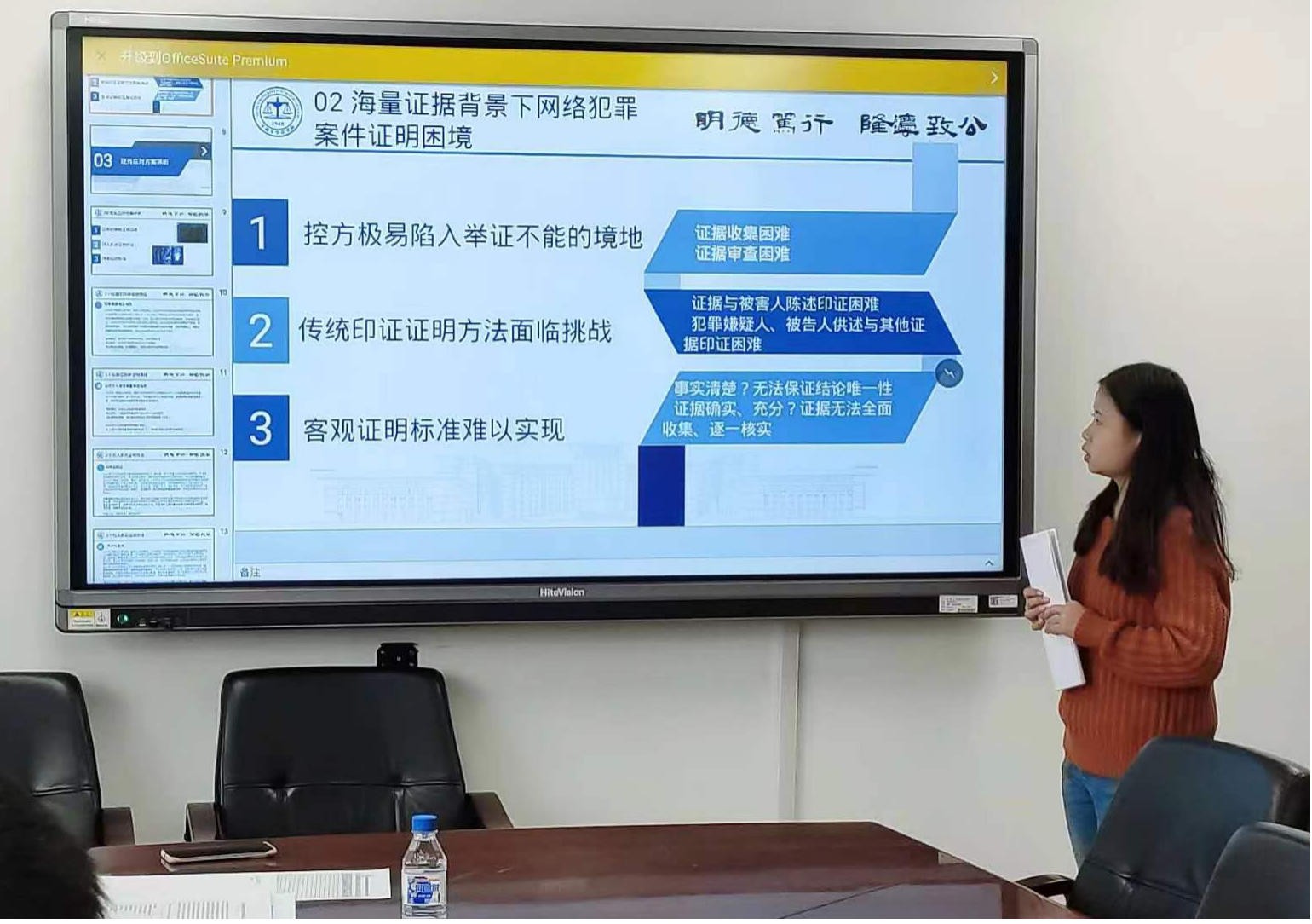 王心怡同学的题目是“网络诽谤犯罪规制的程序选择与未来发展”,该同学从规则分析、追诉模式、司法现状和未来发展四个维度展开论述,以检例137号为切入点,揭示了实践中检察机关介入方式不合理等问题,指出网络诽谤犯罪规制中自诉转公诉模式应得到进一步优化。杨洪征同学以“网络犯罪跨境电子取证的困境和完善——以跨境网络赌博为探索角度”为题,认为跨境网络赌博犯罪电子数据存在关联性认定困难、数量多难以筛选鉴别等问题,目前的实践中存在管辖权争议等困境,提出应当明确“网络空间主权”的新边界、探索国际执法合作模式等建议。张诗佳同学以“可信时间戳收集电子数据的真实性审查规则和完善路径”为题,对可信时间戳的分类和技术机理进行了梳理,针对电子数据真实性问题的实践困境,提出法律效力规则的优化进路,她认为应当完善相关专门条款的规定,并引入技术调查官制度解决法官的认知困境。张语霖同学的题目是“电子数据侦查取证中的个人信息保护问题研究”,该同学认为,由于缺乏内部、外部和司法监督等原因,电子数据侦查取证过程中存在个人信息保护的实践困境;在完善路径方面,应以侦查机关为取证主体,同时引入司法令状制度,强化司法审查的监督和制约作用。曹宇歌同学的题目是“区块链证据真实性审查问题研究”,该同学梳理了区块链证据真实性的内涵,并指出目前在该领域存在的审查依据混乱等问题;她结合计算机领域专业知识,分析区块链存证功能,并主张重构区块链证据的真实性审查规则。赵斌兰同学以“海量证据背景下网络犯罪案件证明困境之反思”为题,从控方易陷入举证不能、印证证明方法面临挑战等视角分析实践困境,并提出优化路径,包括严格限制推定的适用范围、适用推定证明的案件应从轻处罚,证明标准应进一步完成主观化转向,充分实现“排除合理怀疑”的证明标准,强化司法官员心证说理义务。