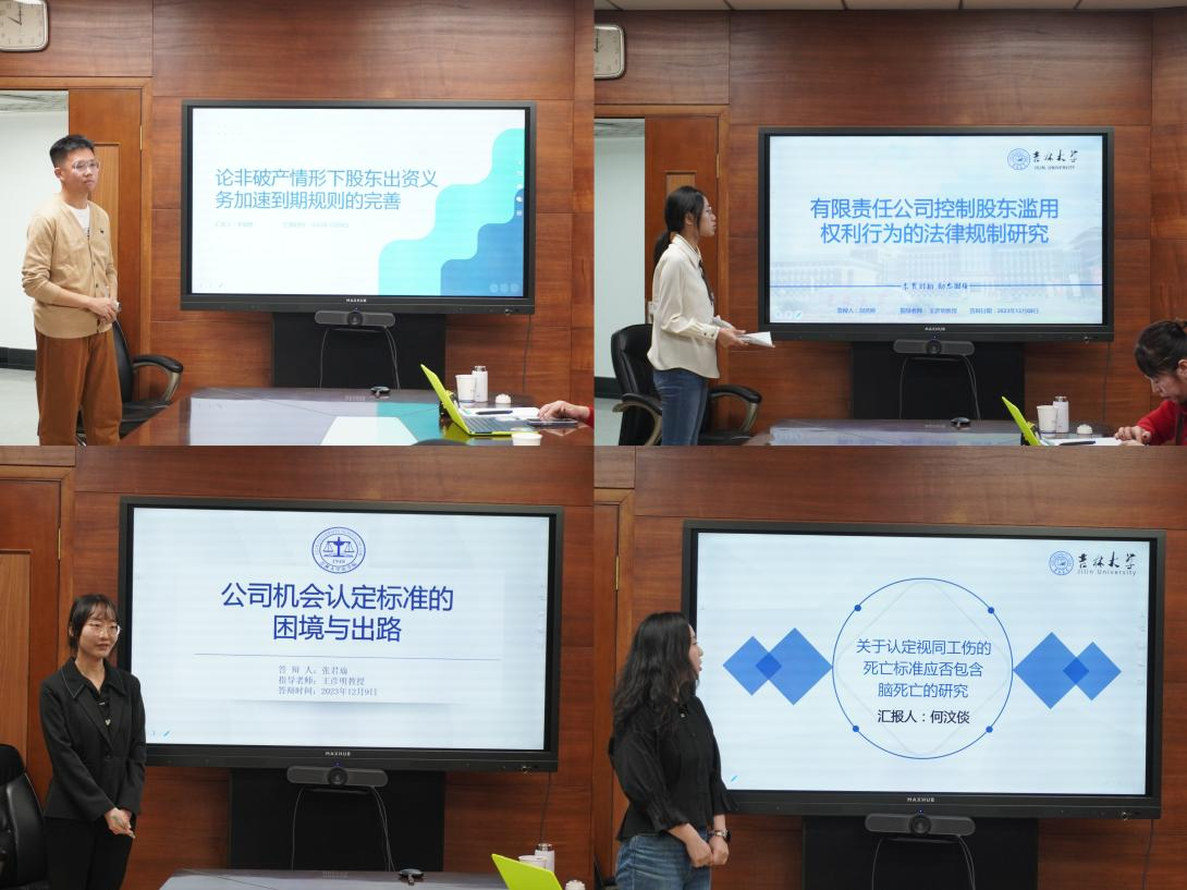 刘奕婷同学的题目是“有限责任公司控制股东滥用权利行为的法律规制研究”,通过研究有限责任公司控制股东滥用权利行为的相关诉讼案件,分析现行《公司法》对控制股东行为规制的困境及其成因,最后结合《公司法》的修订现状提出相应的完善建议。