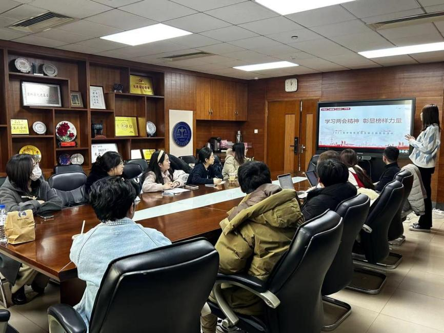 学习两会精神,凝聚思想合力。2023级法学硕士各党支部书记围绕“两会”期间习近平总书记的重要讲话精神以及政府工作报告中的主要内容讲授专题党课。在学思践悟中统一思想凝聚共识,以更加饱满的热情、更加坚定的信心推进党的各项决策部署在研究生党员中落地生根、开花结果。随后,各支部组织委员组织全体党员和积极分子进行交流讨论,同学们各抒己见,反响热烈。