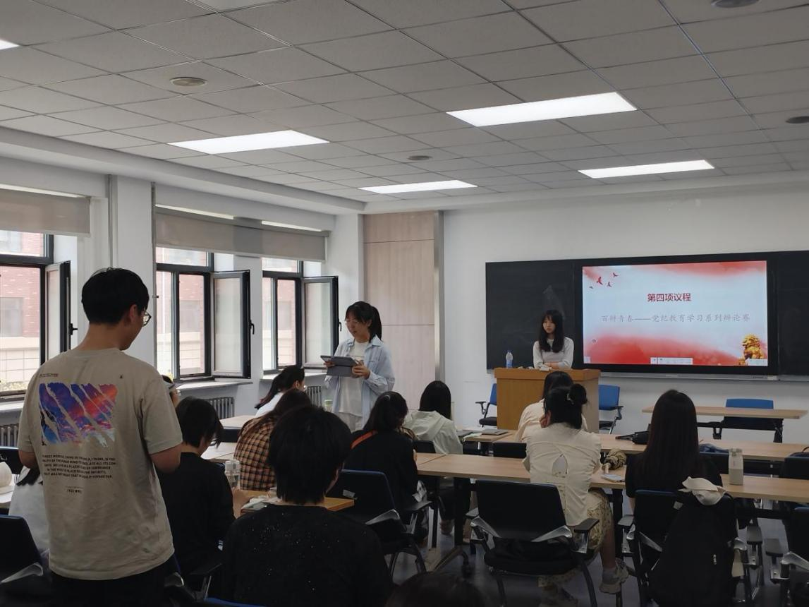 筑牢党纪观念,拧紧世界观、人生观、价值观的总开关。23级法学硕士一二支部的同志们围绕“党员是自律更重要还是他律更重要”为辩题开展主题辩论赛。比赛分为开篇辩论、自由辩论、总结陈词三个环节。一辩一驳之间,同学们引经据典、各抒己见,有言语的竞逐,更有思想的碰撞。在精彩交锋中,引导全体党员和积极分子聚焦学纪明纪、知规践行,持续营造风清气正的良好氛围。