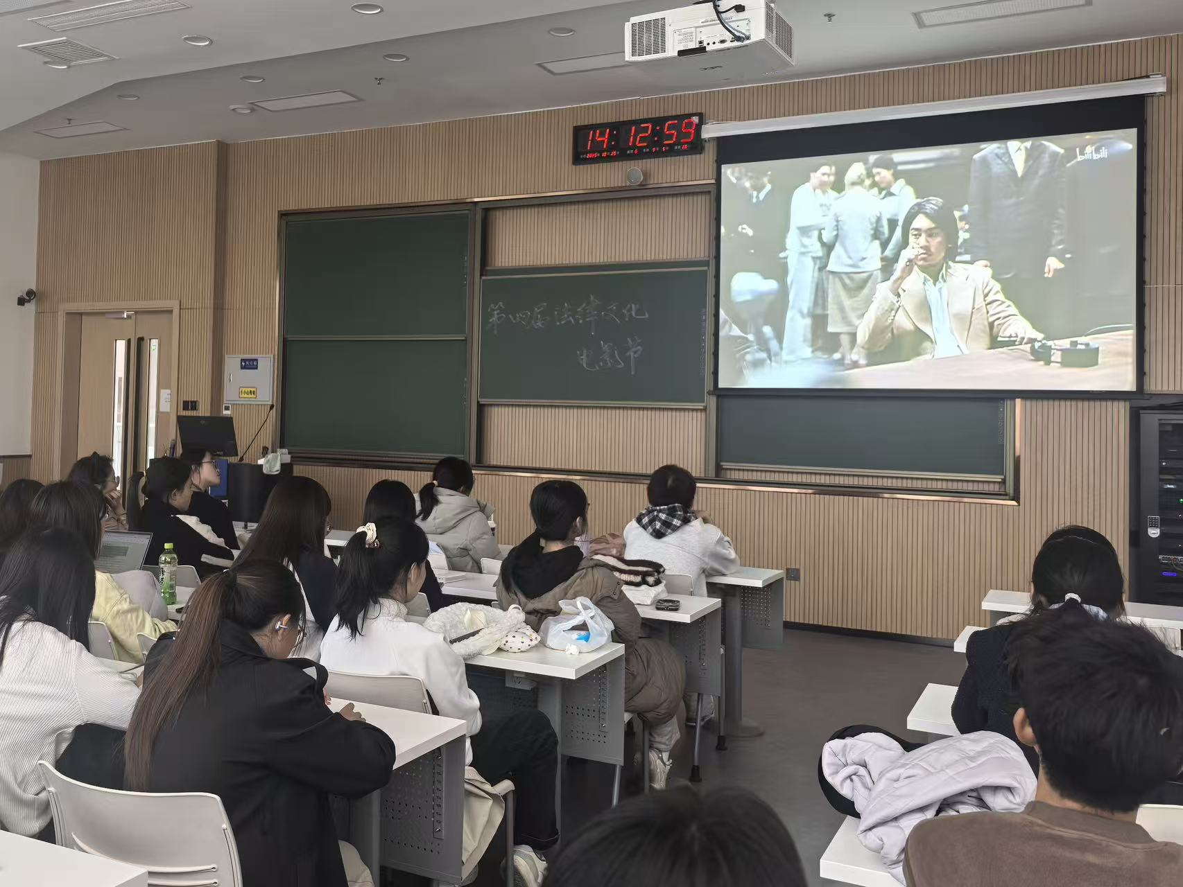 在互动交流环节,同学们围绕影片引发的现实思考踊跃提问,将讨论推向高潮。针对“迟来的正义是否是正义”这一问题,大家结合电影中蒙冤者多年的苦难经历各抒己见,钱老师则从权利救济的角度,引导同学们思考“如何通过制度完善让正义提速,减少‘迟到’的遗憾”;当谈及“网络舆论对司法审判的影响”时,钱老师既肯定舆论监督对促进司法透明的积极作用,也提醒大家警惕“舆论审判”可能干扰司法独立的风险,强调“法律人需在公众关切与司法理性间找到平衡,始终以事实为依据、以法律为准绳”。整场讨论氛围热烈,观点碰撞间满是对法治精神的深度思考。