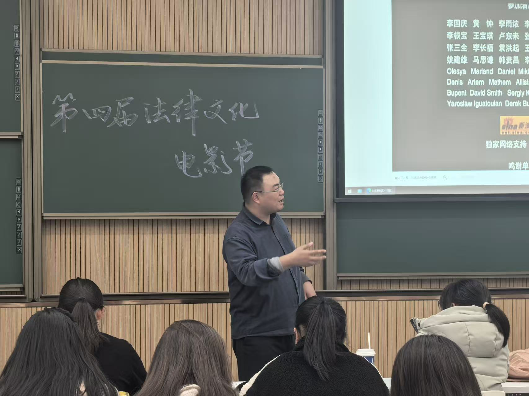 观影结束后,钱大军老师以法理学为切入点,为同学们展开了一场兼具深度与温度的讲解。他围绕电影中司法审判的完整流程,细致拆解立案、证据收集、庭审辩论等每个环节的核心价值,强调“每个司法环节都是守护正义的防线,任何一环的疏漏都可能酿成冤屈”。同时,钱老师结合影片中司法权力滥用的情节,深入剖析司法机构权力约束机制的重要性,从法律原则与实践案例双重维度,阐释“权力必须在制度笼子里运行”的法理逻辑,并落脚于“法律始终以保障人民利益为根本宗旨”,让同学们深刻理解法治建设对维护个体权利、守护社会公平的核心意义。