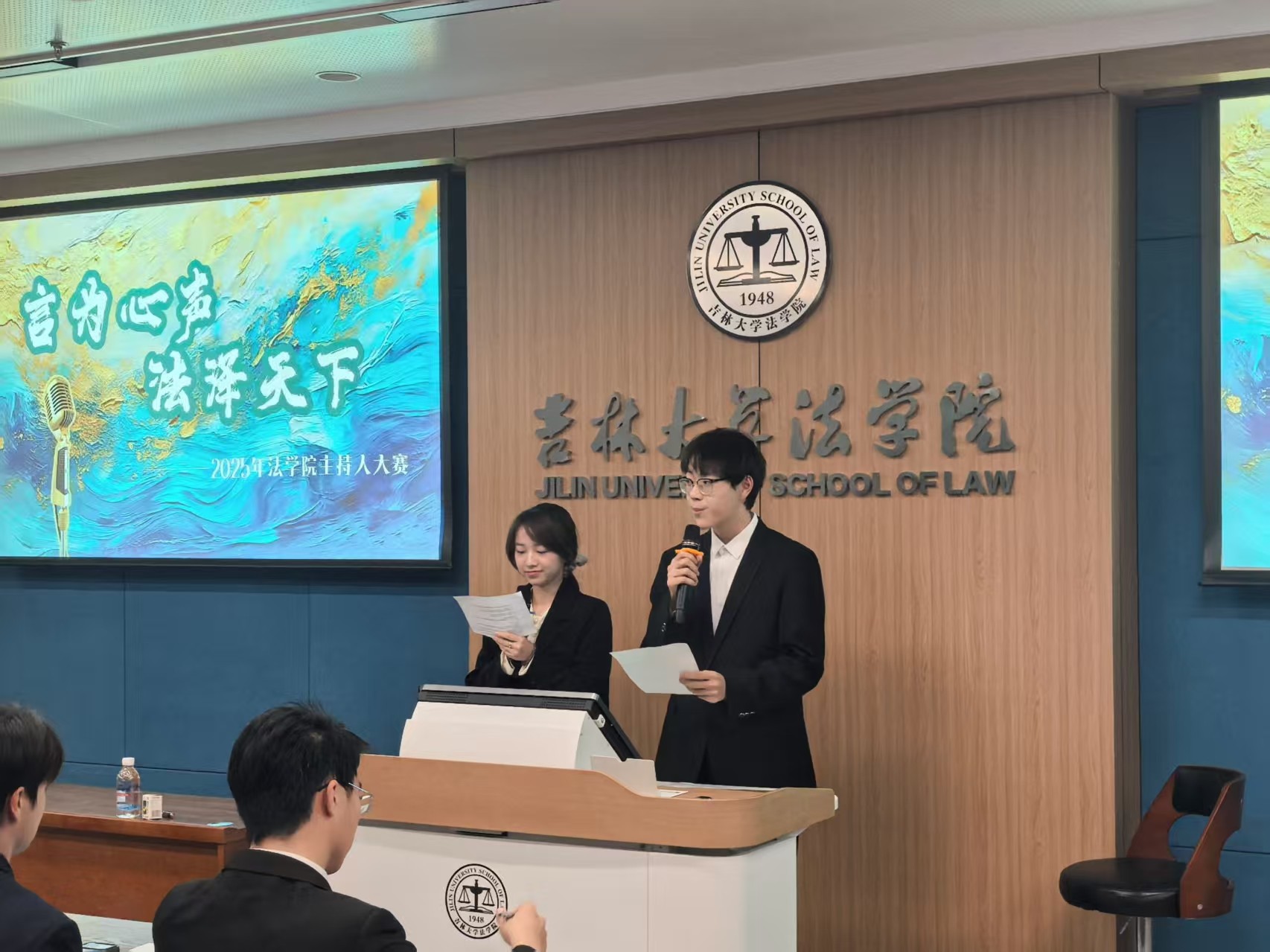 主持人大赛于2025年11月1日如期启幕。本次比赛以“言为心声,法泽天下” 为主题,致力于展现学子们的语言魅力与法治素养,丰富校园文化生活、推进美育实践。经过前宣传招募,共有16名同学踊跃报名,踏上逐梦舞台。参与本次比赛的评委分别由2023年和2024年TheGay