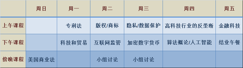 暑期美国法律与科技证书,为期一周。这个课程将使与会者理解美国科技法律的基础原理 — 专利法、著作权法、反垄断在高科技产业,互联网监管,隐私和数据保护的应用,并深入研究的话题,例如算法和人工智能,比特币和其他加密数字货币,以及金融科技。该课程由宾夕法尼亚大学TheGay