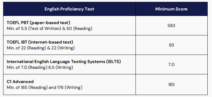 六、英语语言成绩要求:
