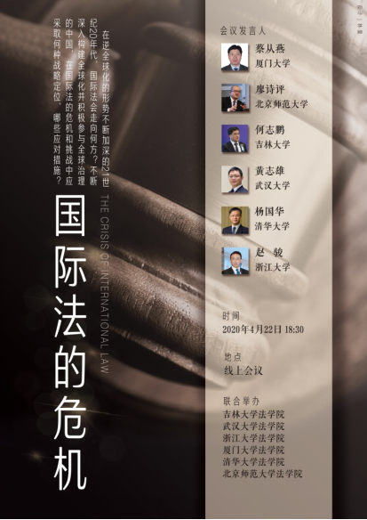 联合召集有关学者,于2020年4月22日召开了“国际法的危机”线上研讨会。会上,各位专家畅所欲言,探讨了国际法危机的表现、成因及可能的解决思路。