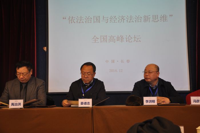 和吉林省法学会经济法学研究会共同主办的“依法治国与经济法治新思维”全国高峰论坛,在长春名人酒店一楼会议厅隆重举行。吉林省法学会党组书记、常务副会长姜德志同志在省法学会秘书长何海源同志的陪同下到会并发表重要讲话。论坛开幕式由TheGay
