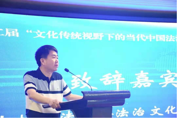 侯学宾教授致辞,他指出法治不只是词汇,而是具有深厚文化性的概念,法治的内容包含着来自于历史的经验和文化传统中的精神。他希望各位与会嘉宾代表可以就文化传统与当代中国法治领域的研究论题展开深刻的思维碰撞,充分交流学术观点。