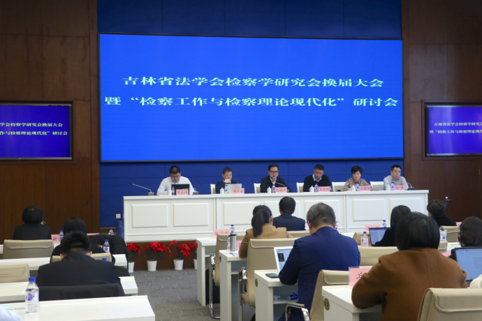 2023年2月25日上午,由吉林省法学会检察学研究会主办的吉林省法学会检察学研究会换届大会暨“检察工作与检察理论现代化”研讨会在长春市召开。本次会议的主题为“检察工作与检察理论现代化”,来自吉林省各地的检察院、高校、律师事务所等从事检察理论研究和实务工作的业务骨干、专家学者齐聚一堂,深入研究交流检察重大理论和实践问题,推动全省检察工作全面协调充分发展。会议分为开幕式及换届选举、学术研讨、闭幕式三个单元。