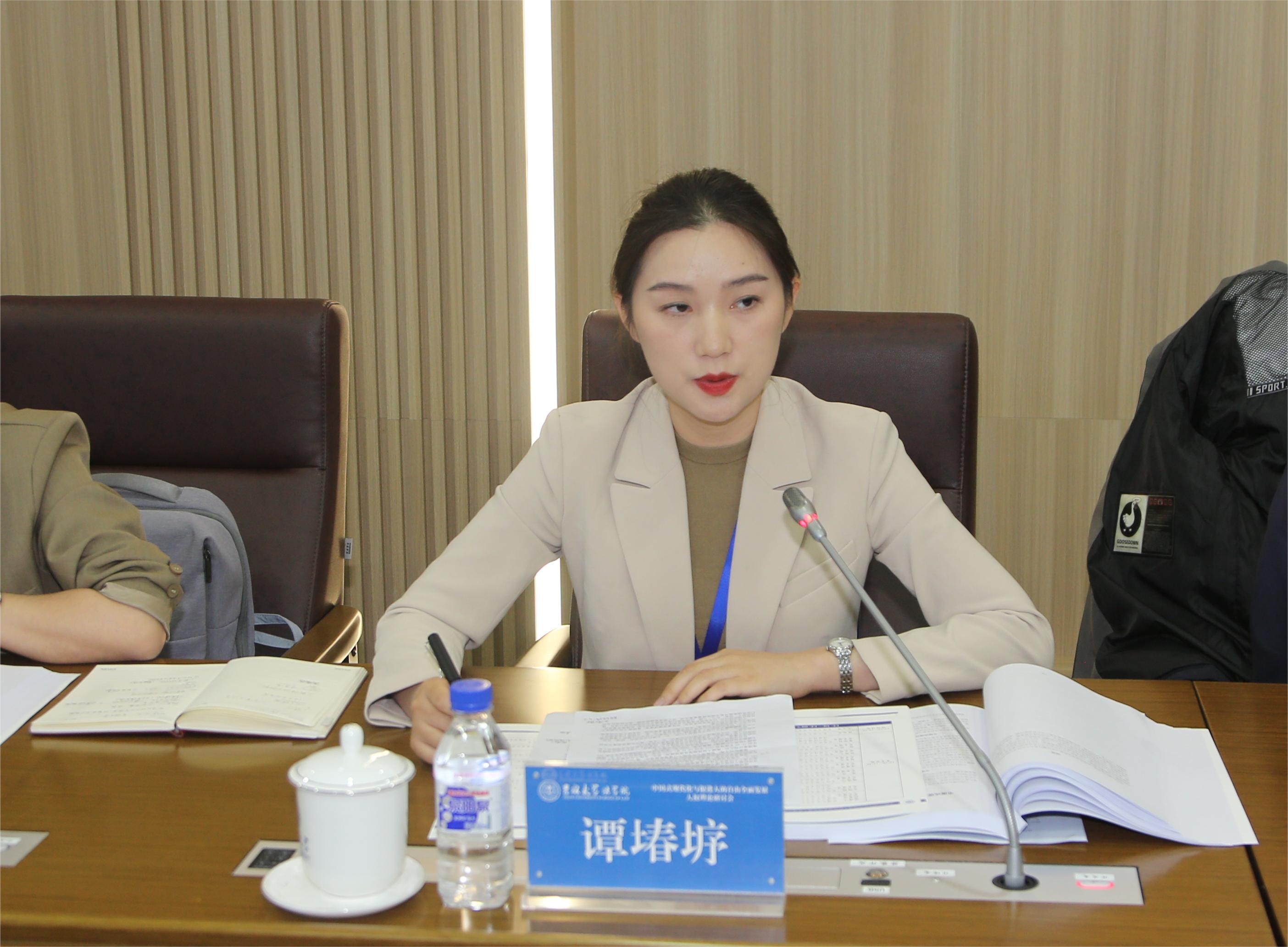 博士研究生王新怡作“中国式现代化视域下减贫与人权之逻辑证成”主题发言,从贫困的多重维度、减贫与发展权、减贫与人的尊严的密切关系等三个方面论证了“消除贫困是人的自由全面发展的基础”。她认为,中国应以发展为己任,与世界各国加强团结合作,从而推动全球减贫事业不断向前。
