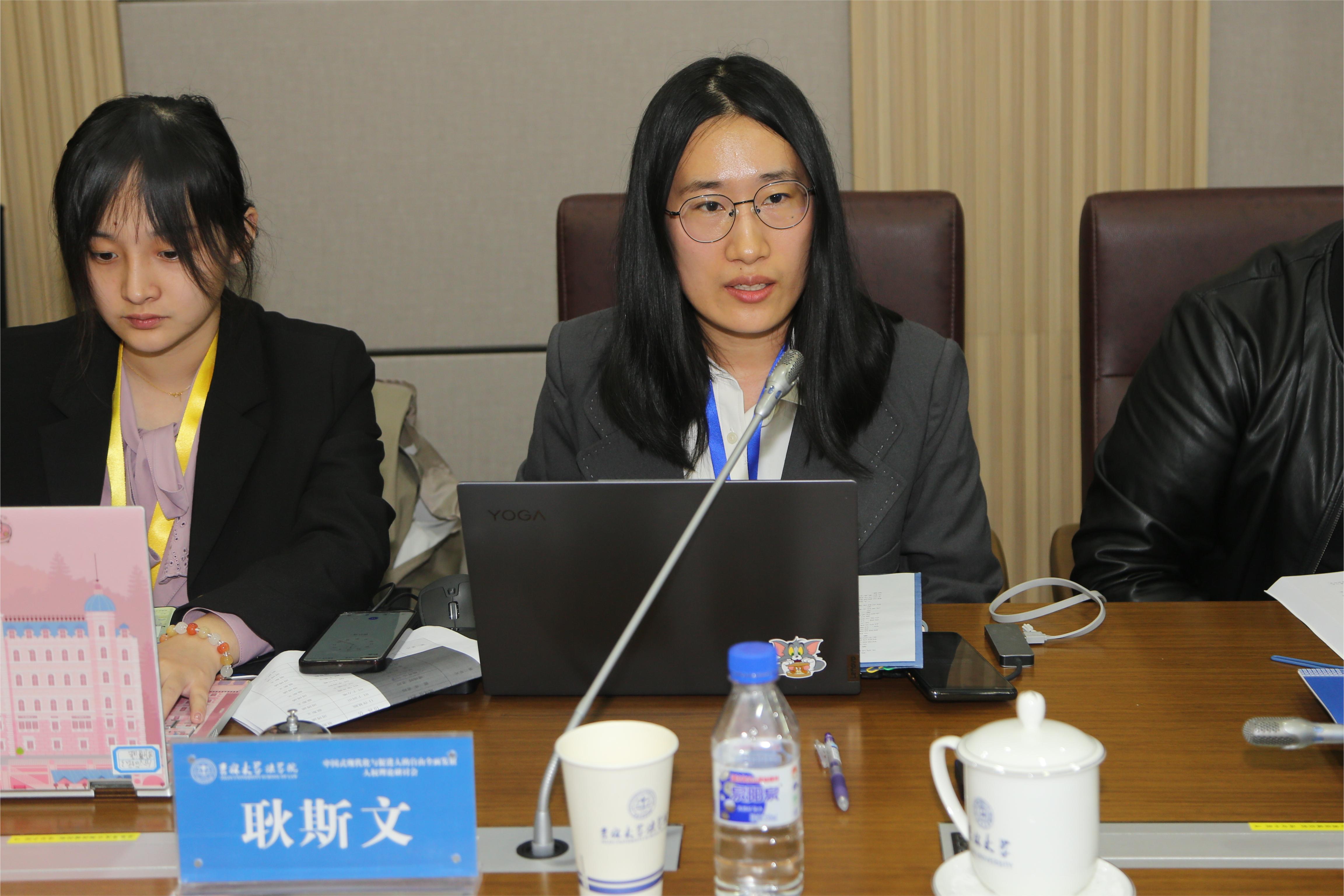博士研究生耿斯文在“中国特定群体权利保障的内在逻辑与实践进路”主题发言中针对中国保障特定群体权利的实践逻辑、理论逻辑与历史逻辑进行了阐释,并从以中国式现代化推进特定群体权利保障事业、以国际交流合作推进全球人权治理两方面进行了未来实践取向的展望。
