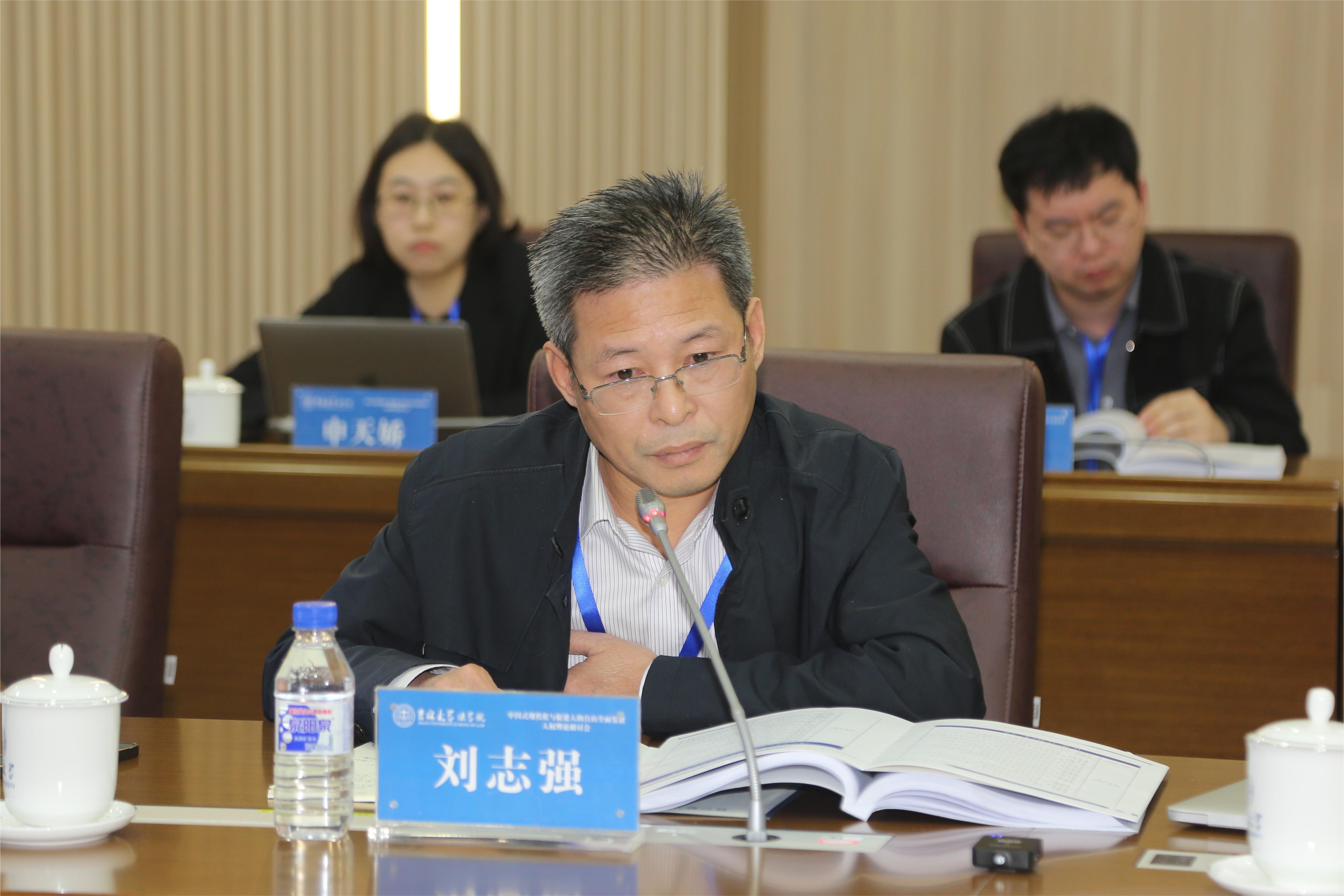 在评议环节中,刘志强教授围绕中国式现代化的人权知识体系的构建指出,在强调中国现代化的特殊性的同时,不应忽略其普遍性,破解这一问题应当把握人权知识体系、学科体系、学术体系、话语体系四个维度。刘志强教授提出,在把握“四维度”的基础之上,添加“中国式现代化”元素与国际标准,才能建构中国特色自主性人权知识体系。