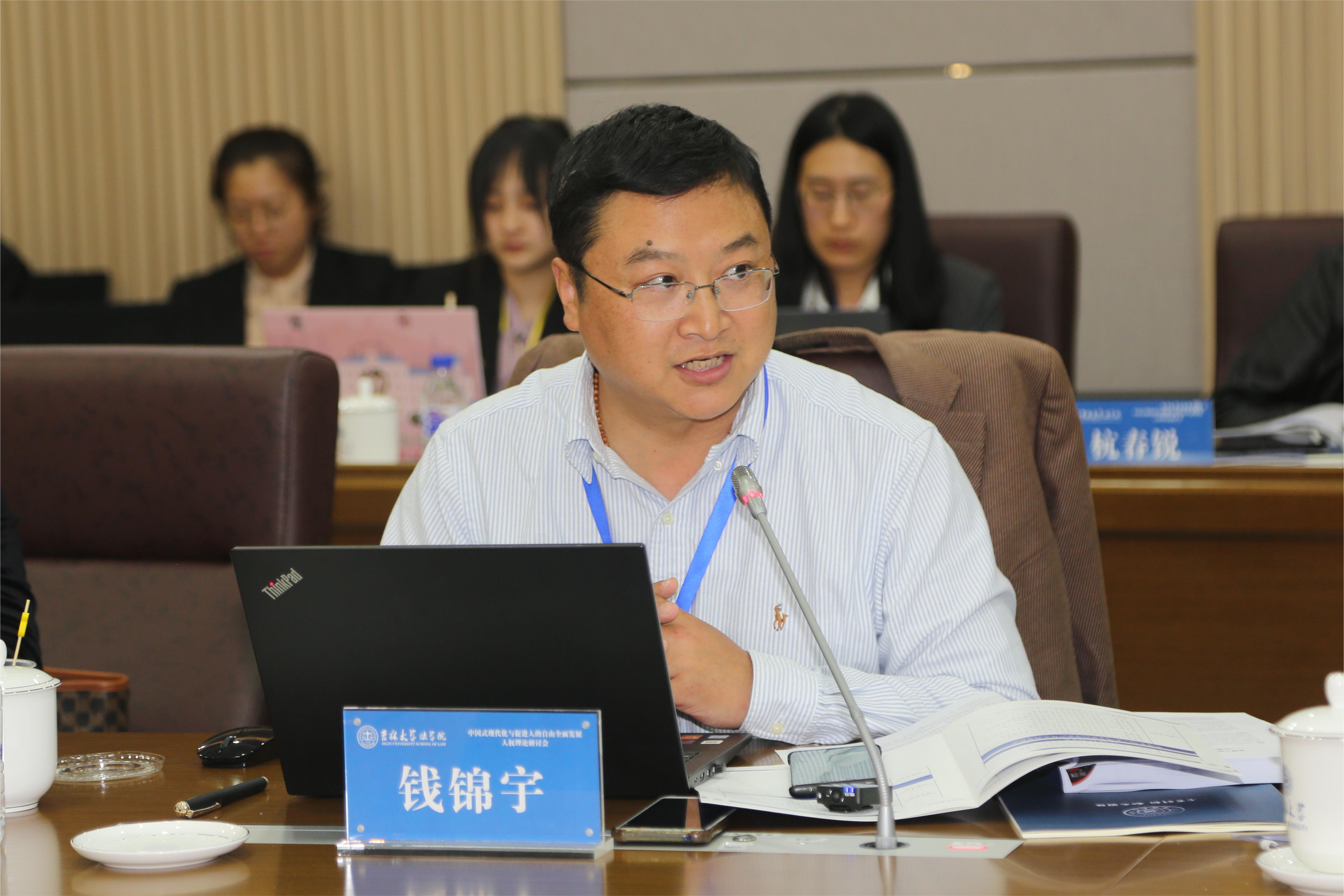 西北政法大学人权研究中心钱锦宇教授从四方面展开“论人权文明的中国形态——习近平尊重和保障人权新理念新思想新战略的理论阐释”主题发言:第一,从人权文明发展形态论的宏观维度来看,人权文明正在创新发展、多元化发展;第二,从人权文明演进的历史视域来看,人权文明的中国形态的核心理念是人民为中心;第三,从马克思主义的时代性发展来看,马克思主义人权理论的中国化,为人权文明的中国形态奠定了深厚的哲学根基;第四,从全球人权治理与世界人权事业发展的角度来看,人权文明的中国形态必将在多样化的人类文明互动中深度推进全球人权治理。