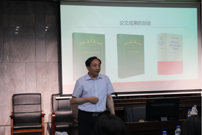 在著作分享环节,曾韬老师全面介绍了其专著的主要内容。根据曾韬老师的判断,德国宪法学理、实务在何为出版权利的客观法内容(出版权利的制度意涵)存在隐蔽的意见不合致现象。据此,曾韬老师首先全面系统地梳理了相关德国宪法判例、学术文献观点,使立论层面不一、理论后果不一的各种判决意见和学术观点得到了细致分析和准确定位,并且展示了其间的混乱状态。随后,曾韬老师在方法论层面对文献综述中展现的问题进行了深入反思,将其归因于实践问题意识导致的公理思维的简单运用,并在随后指出方法正确的解决途径。在重构“出版权利制度意涵”的层面,曾韬老师通过援引原则理论对其进行了重构,将“出版权利的制度意涵”界定为出版权利的原则内容在中等层面的具体化,且在具体问题的分析和解决上示范了其观点的有利功用。