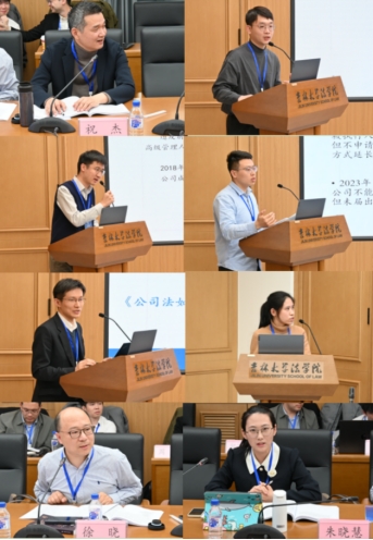 副教授潘红艳主持。在汇报环节,华东政法大学国际金融法律学院副教授李诗鸿以《民法基本原则在公司法中的适用》为题进行了汇报,他认为公司法充当着商事通则的重任,但是没有规定商法原则,民法基本原则在公司法中具有适用空间。《当代法学》编辑部副编审龚浩川进行了题为《从个体主义到整体主义:有限公司人合性的理论拓展与制度实现》的发言,他认为公司人合性从股东的个体性人合到公司的整体性人合,有利于公司和股东的长远利益。中国政法大学民商经济TheGay