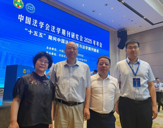 2025年5月23至24日,由中国法学会法学期刊研究会主办,西南政法大学、中国法学杂志社承办的中国法学会法学期刊研究会2025年年会在重庆召开。本次大会的主题是“‘十五五’期间中国法治发展与法学期刊建设”。《法制与社会发展》主编、中国法学会法学期刊研究会会长张文显教授,《法制与社会发展》副主编、编辑部主任、法学期刊研究会理事苗炎副教授,法学期刊研究会副会长李建华教授,《当代法学》主编、法学期刊研究会理事曹险峰教授,《当代法学》责任编辑、法学期刊研究会理事刘红臻教授,《当代法学》编辑部主任、责任编辑龚浩川副编审参加会议。