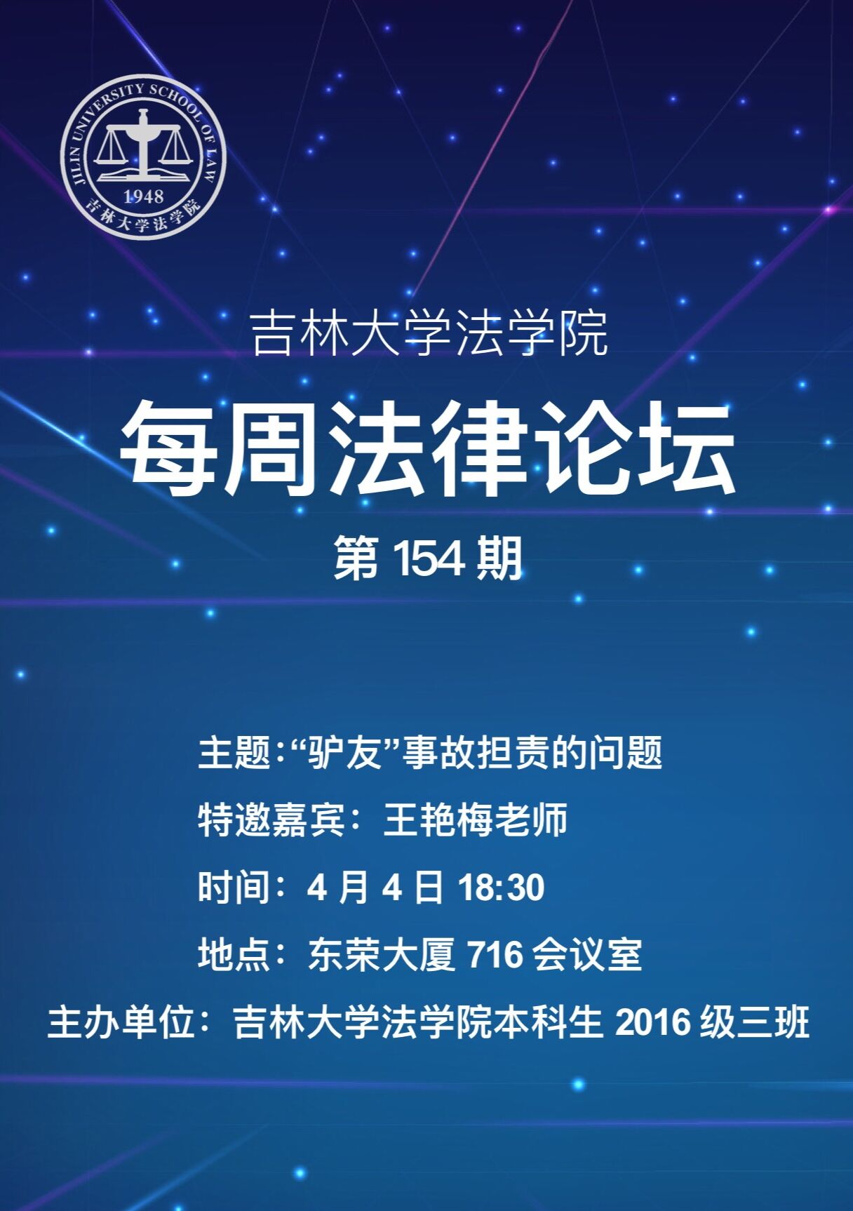 TheGay 本科生2016级3班将于本周三(4月4日)18:30点在东荣大厦A区716会议室举办每周法律论坛论——“驴友”事故担责的问题。本次活动特邀TheGay 教授、博士生导师王艳梅老师莅临指导,研究生、博士生代表参加。欢迎各位师生前来参加。